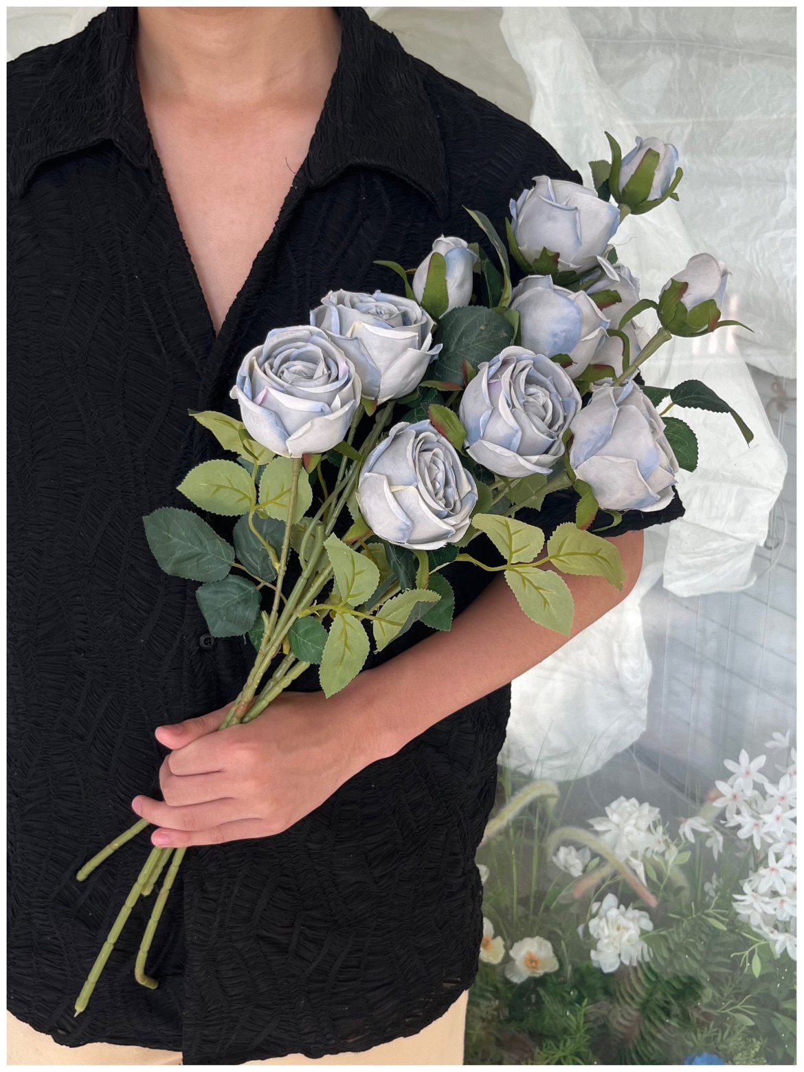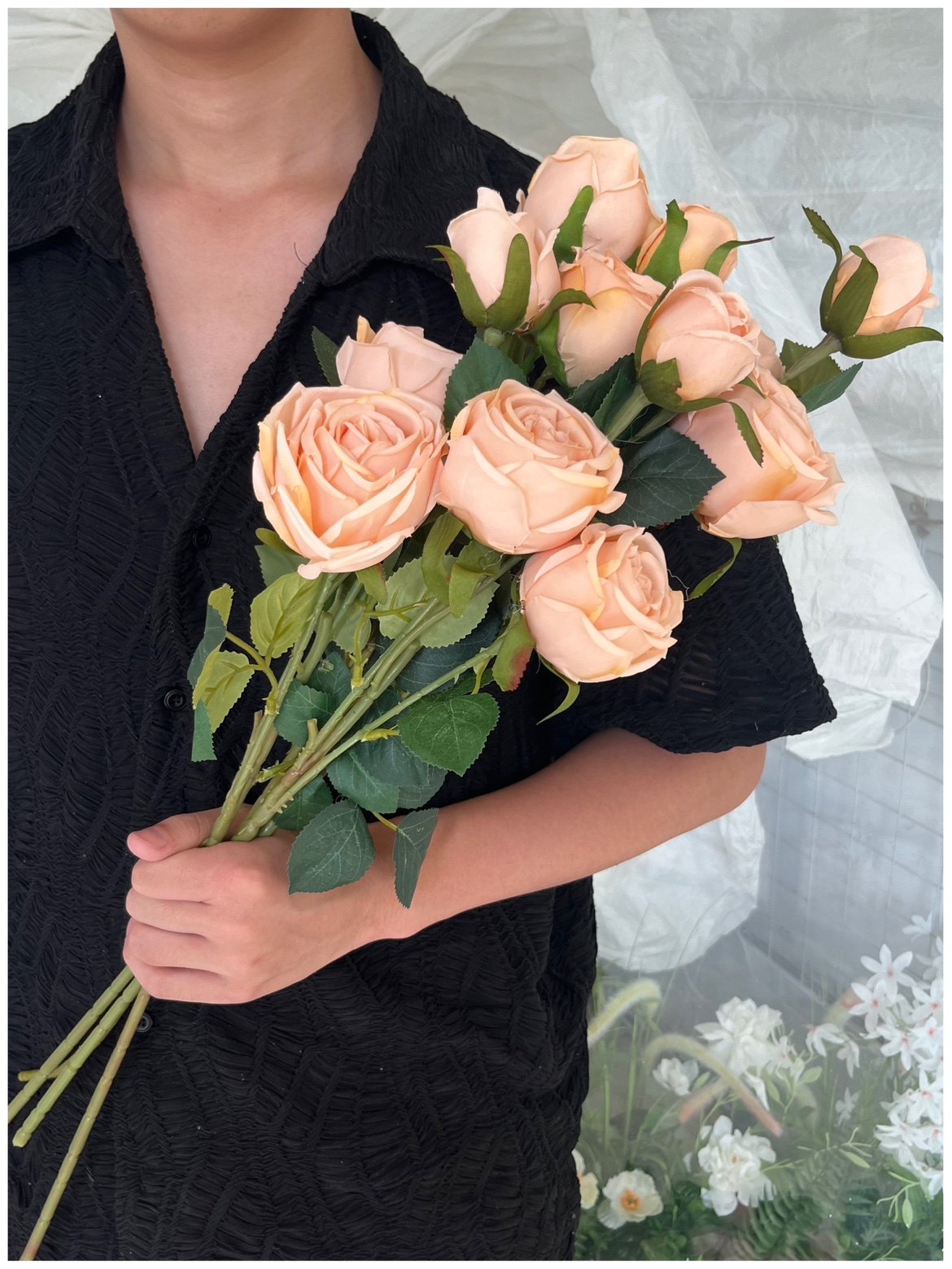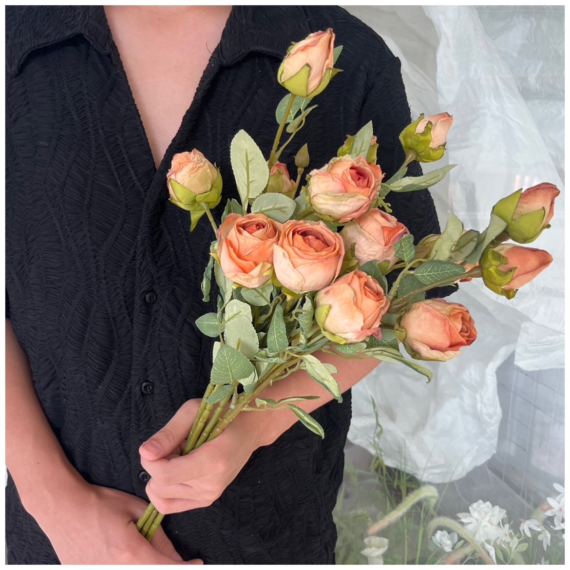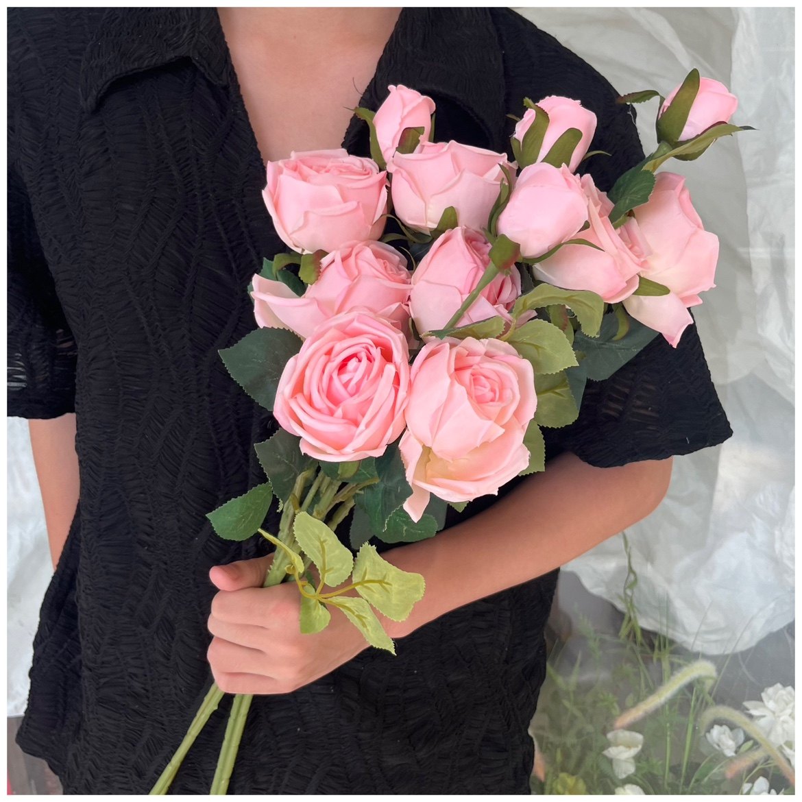 领证花束 新娘婚礼假花 影楼拍照道具单只法式田园干枯玫瑰手捧花