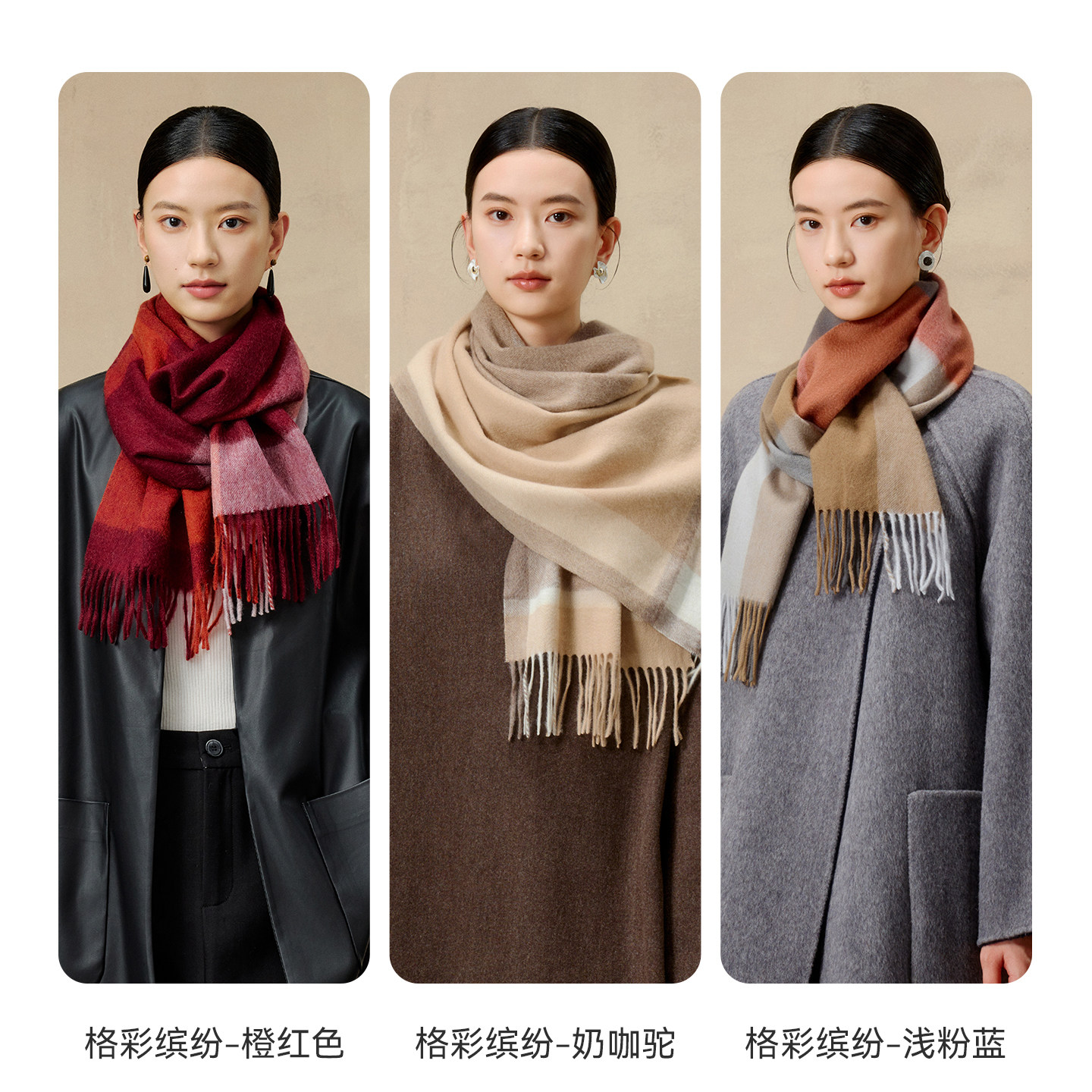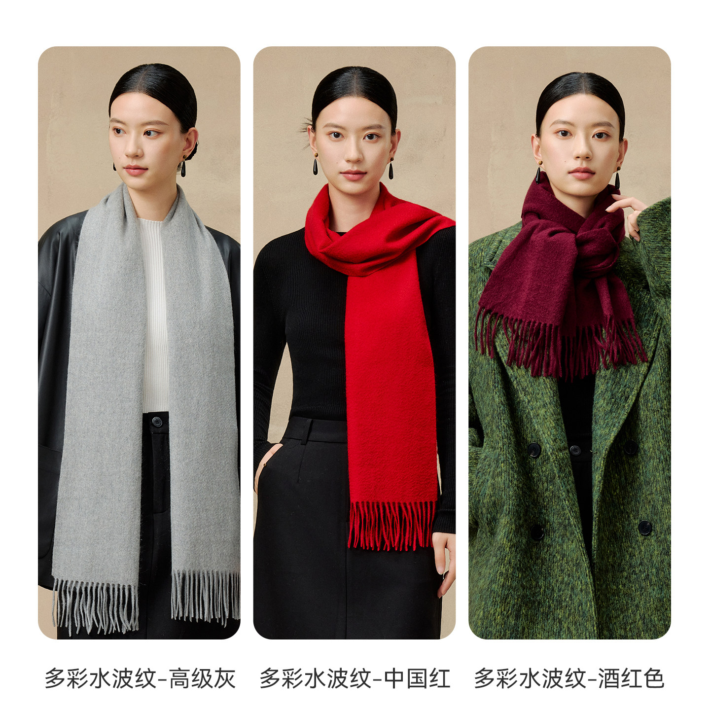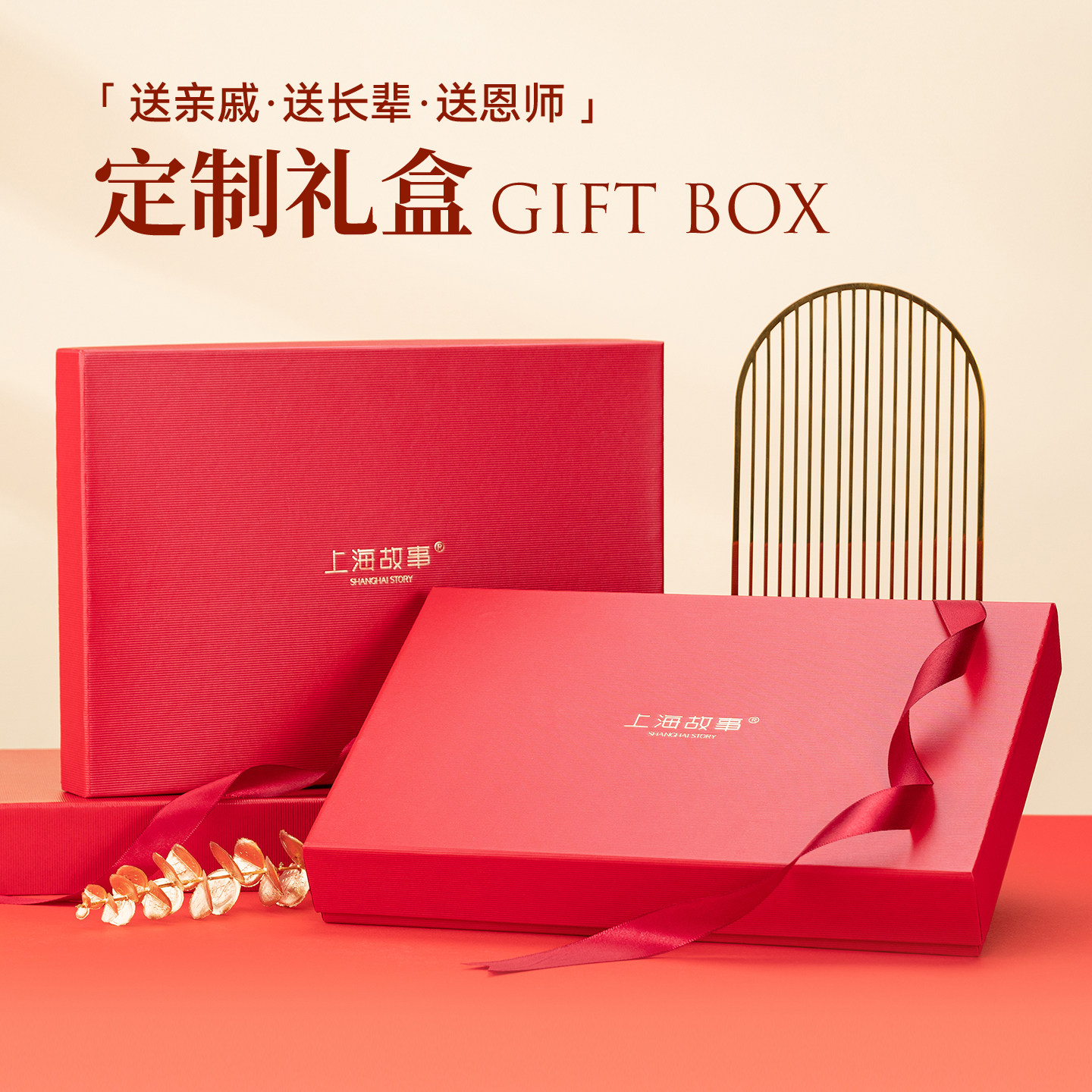 上海故事2025秋冬新款100%山羊绒红色围巾过年送礼送长辈礼盒装