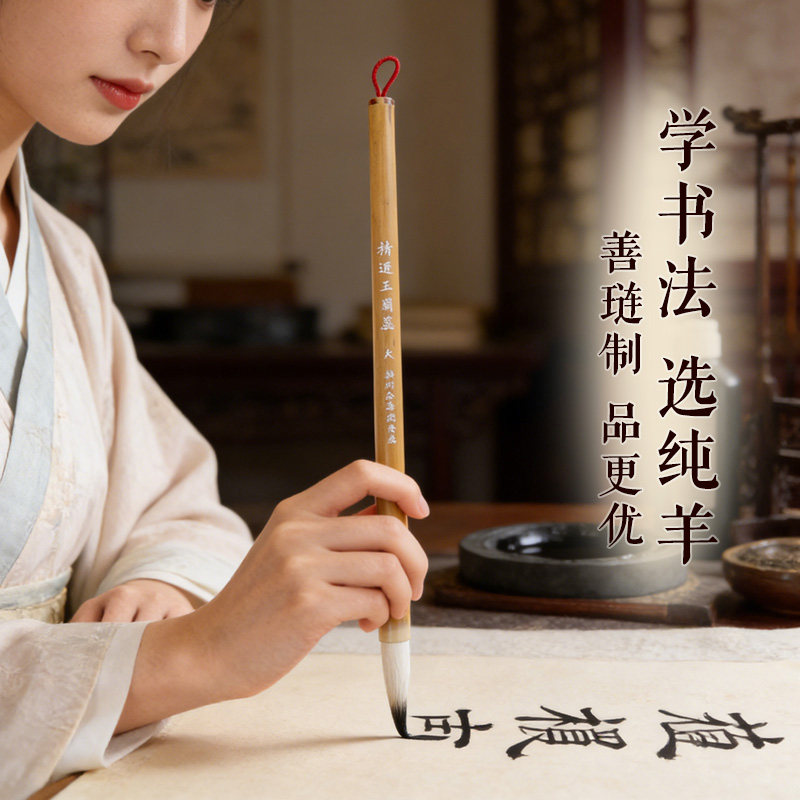 湖羊纯羊毫毛笔书法专用高档专业级中楷玉兰蕊羊毫楷书行书隶书篆体魏碑练字及花鸟国画湖州善琏的湖笔正品