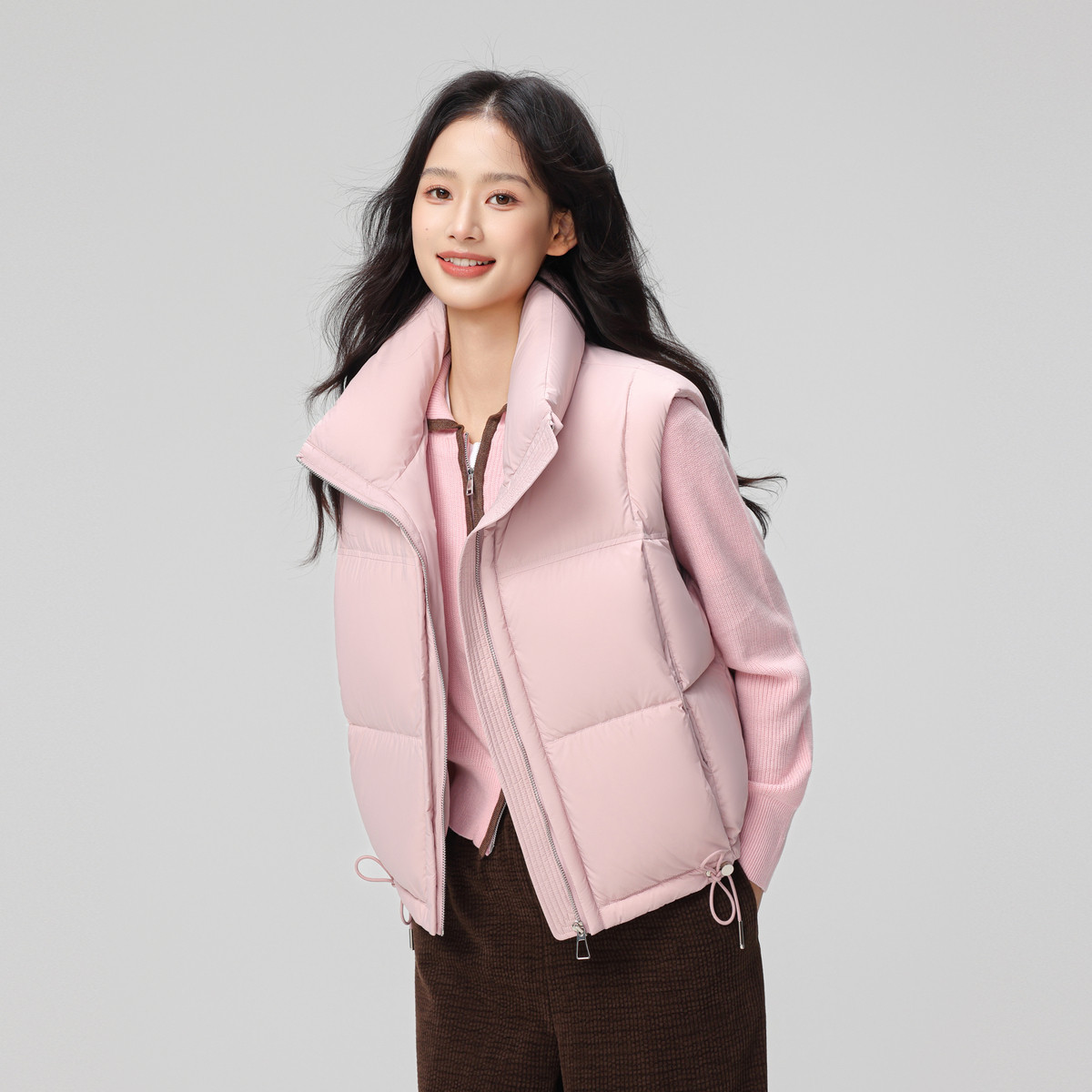 【蜜蜂惊喜社】雪中飞女士立领抽绳韩系轻盈百搭保暖羽绒马甲