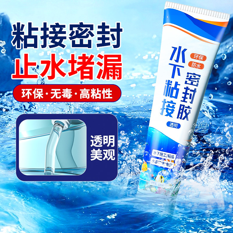 水下粘接密封胶粘鱼缸漏水修补专用胶透明无痕水中玻璃胶高强度马赛克瓷砖水族管泳池止漏SPA胶带水堵漏胶水