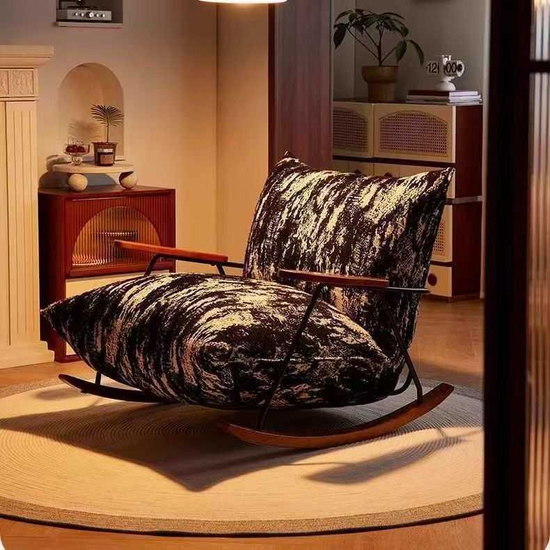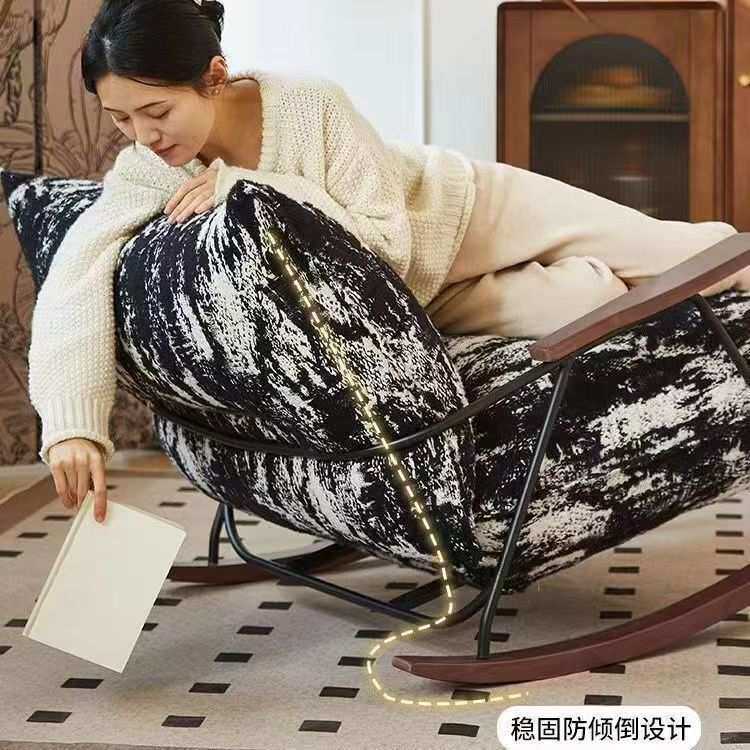 水墨画复古摇椅家用单人卧室客厅阳台懒人沙发休闲躺椅简约轻奢风