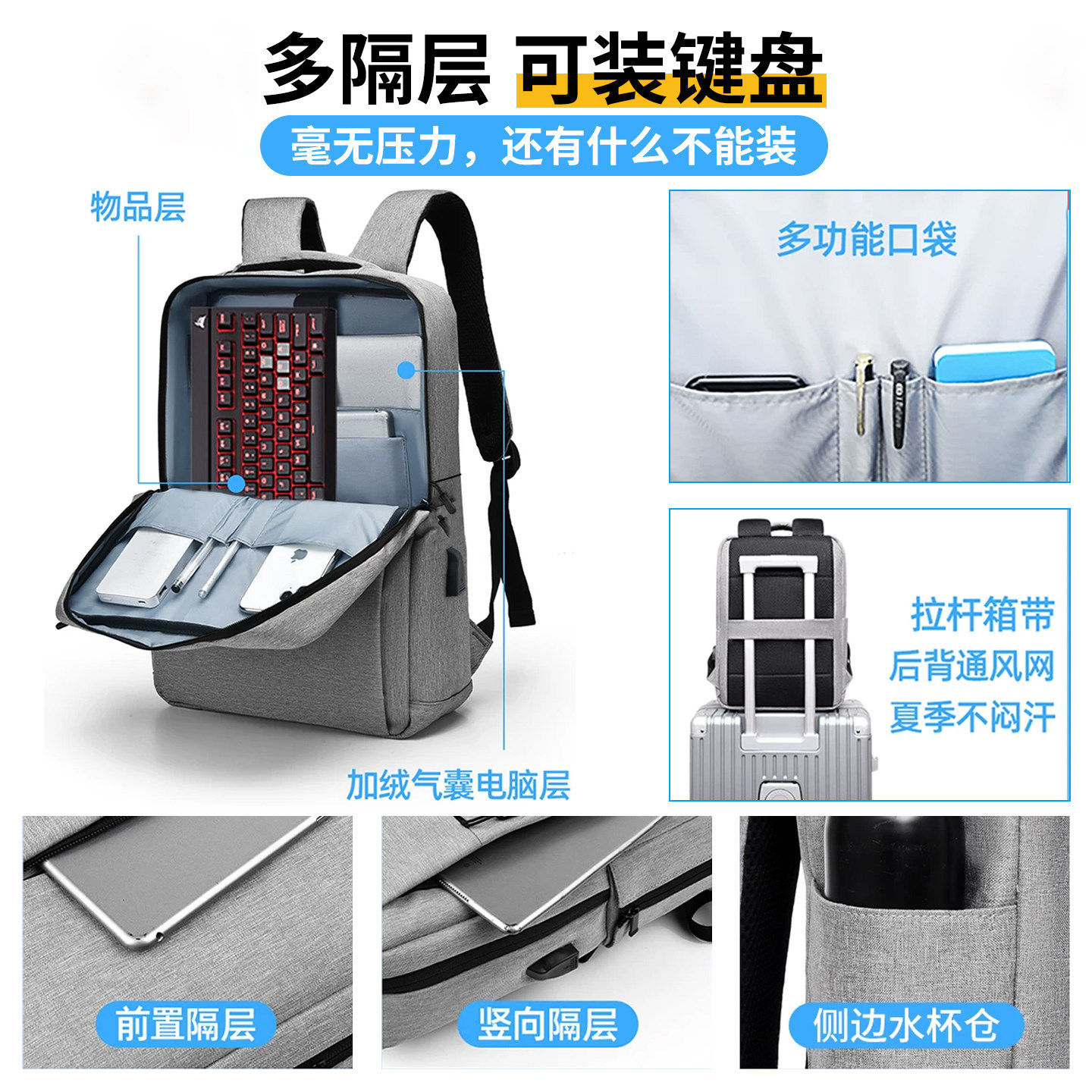 2026新款笔记本电脑包双肩背包男女16寸防摔防震气囊适用华为madebookd14华硕天选6pro联想拯救者y7000通勤17