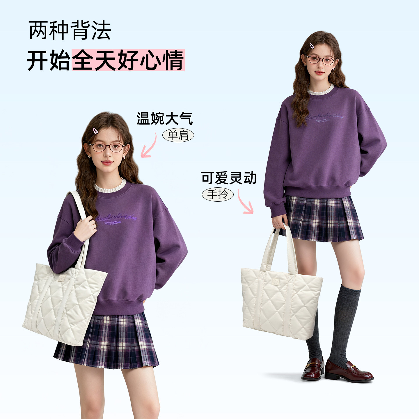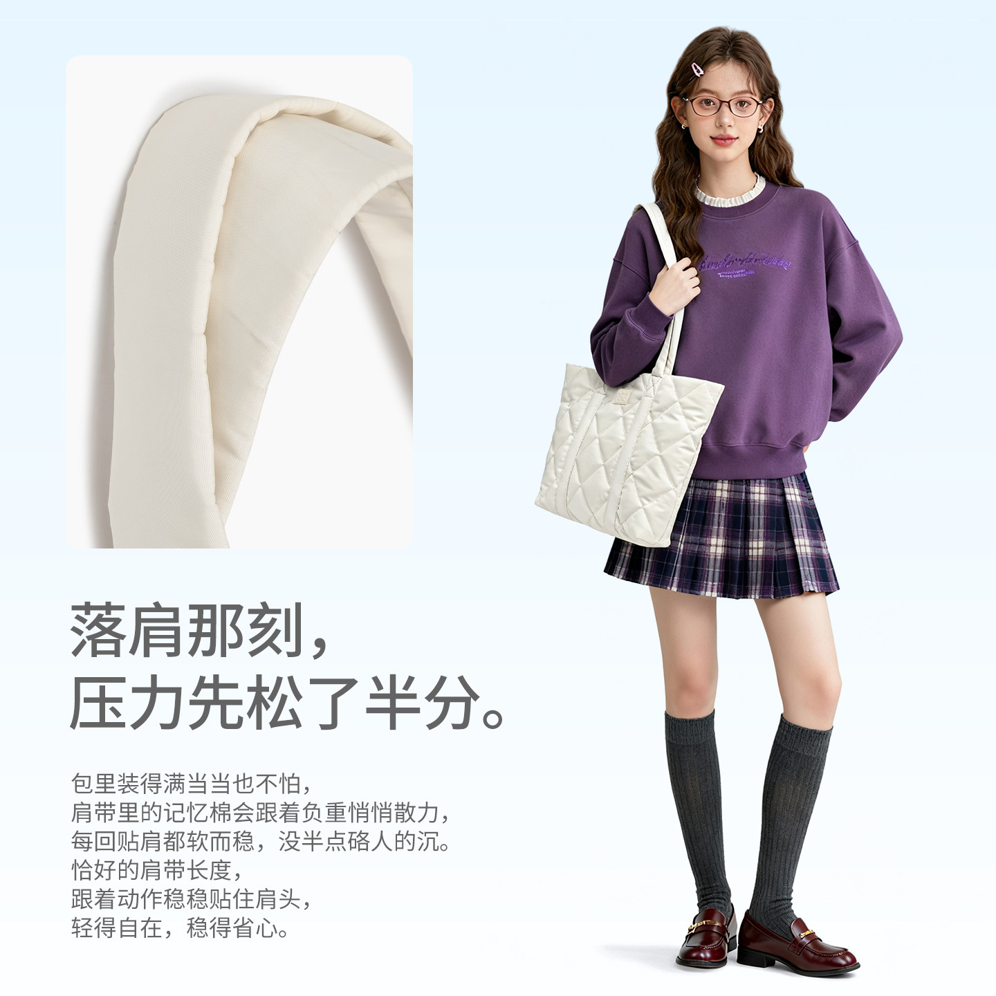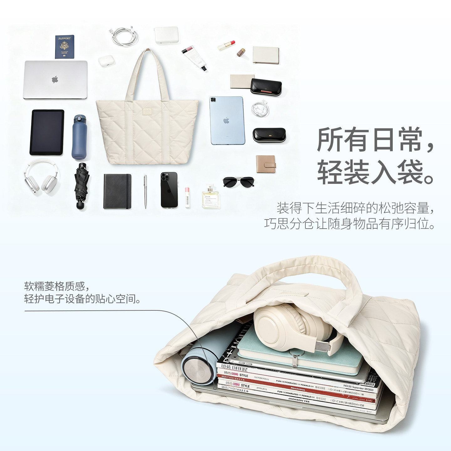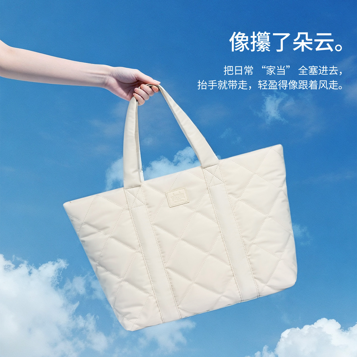 Pepsi/百事冬季轻便云朵托特包女大容量通勤羽绒单肩包上课电脑包