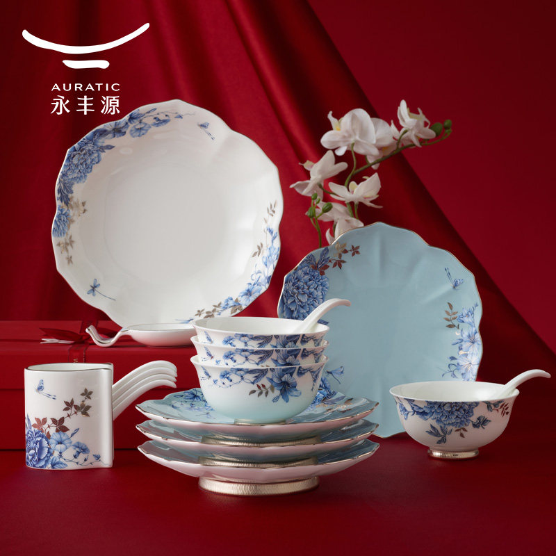 国瓷永丰源铂金青花小碗/调羹/面碗 陶瓷餐具散件 安全包装