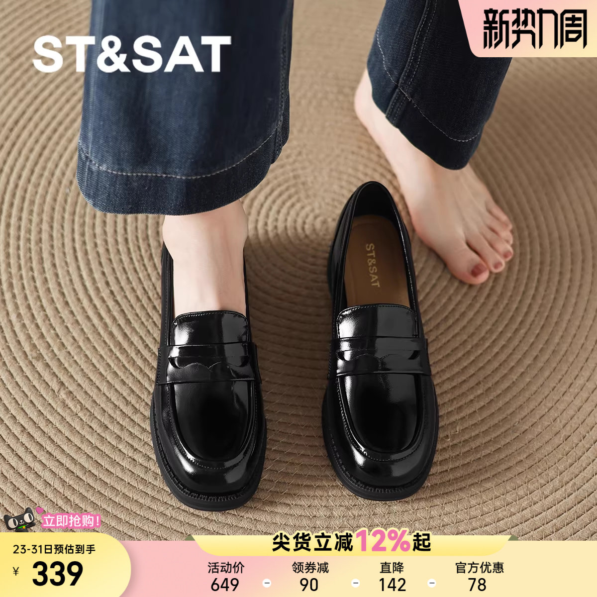 星期六英伦风小皮鞋女2025新款秋季厚底乐福鞋黑色单鞋软底豆豆鞋