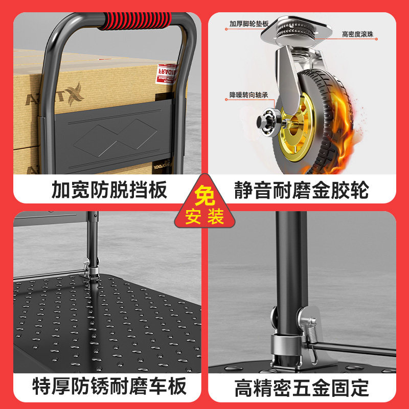 小推车拉货手推车平板车搬运车家用拖车折叠手拉车快递小拖车轻便