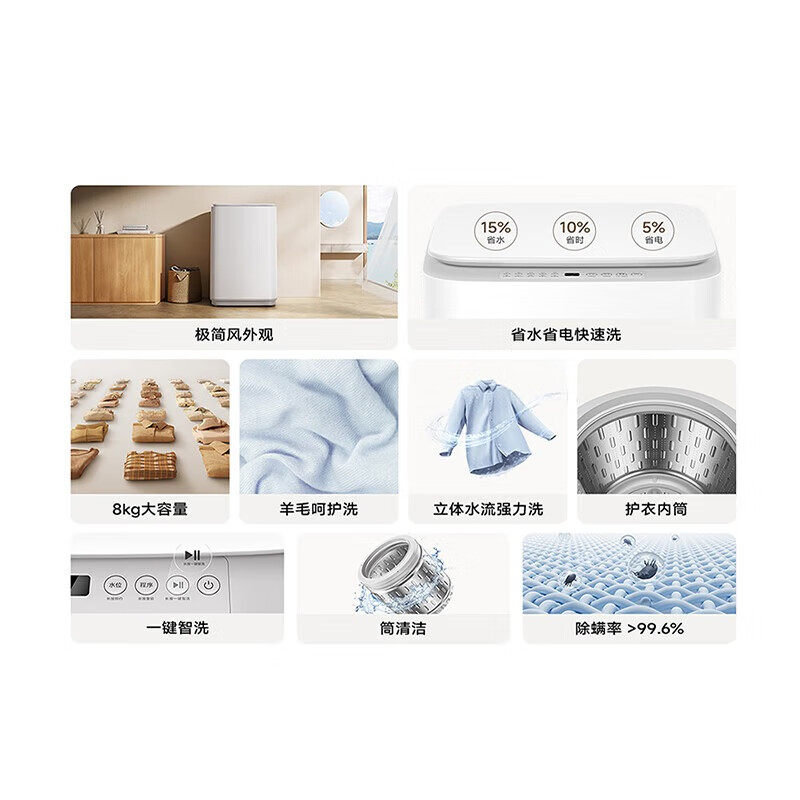 小米米家超净洗波轮全自动洗衣机8kg除螨小型洗脱一体N
