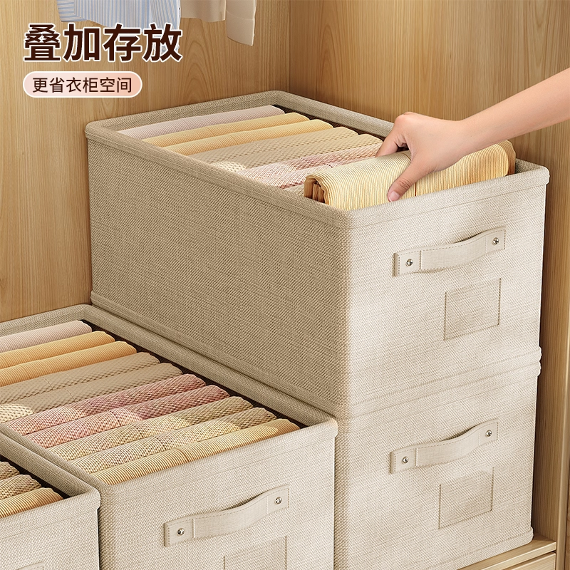 衣服收纳箱家用衣柜分层整理盒放衣物裤子布艺棉麻折叠储物筐神器
