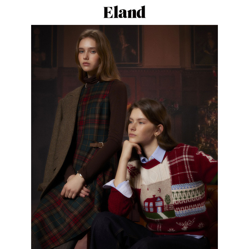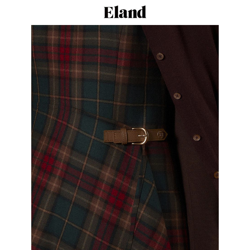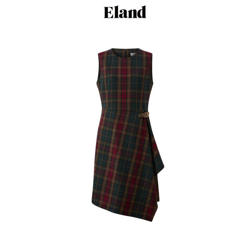 Eland衣恋连衣裙女格纹含羊毛不规则下摆裙子春季新款