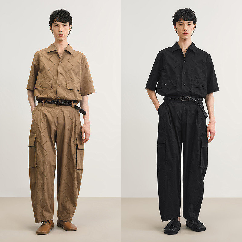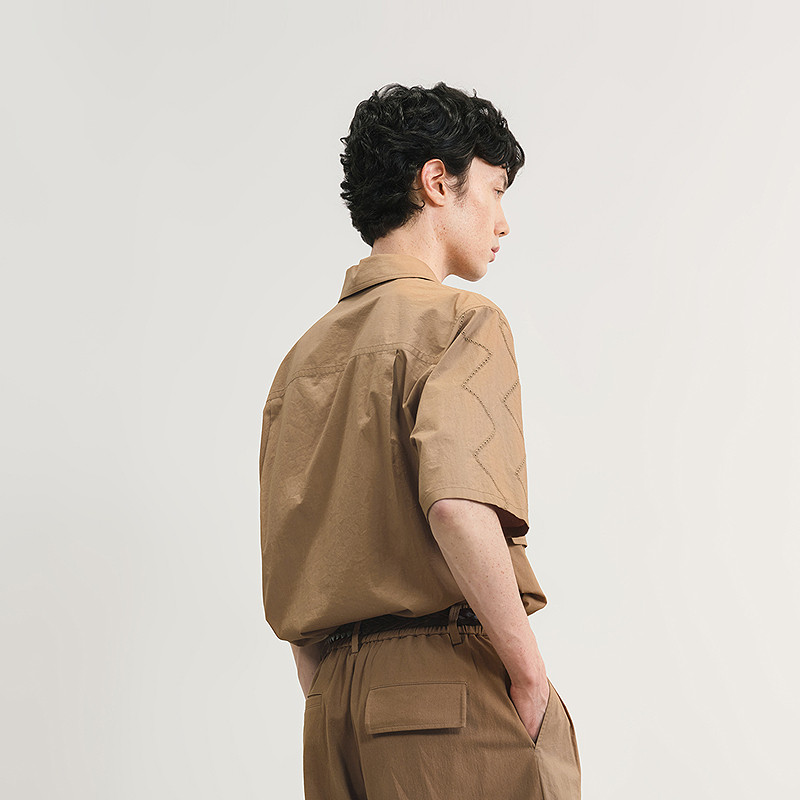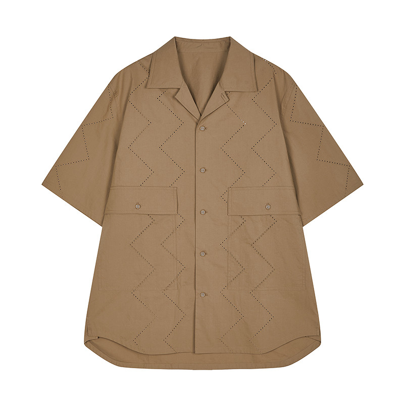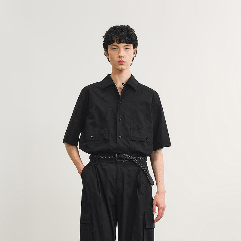 速写男装春夏新款男士衬衫宽松刺绣短袖衬衣翻领上衣休闲时尚复古
