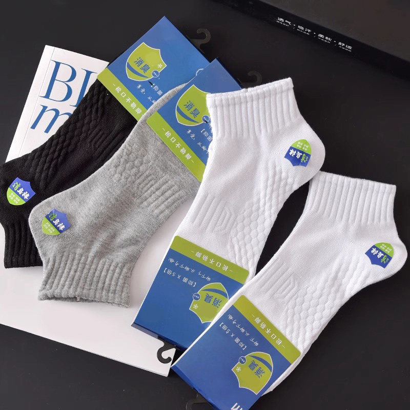 袜子男纯棉短袜夏季薄款男士防臭运动吸汗透气夏天白色中筒袜短筒