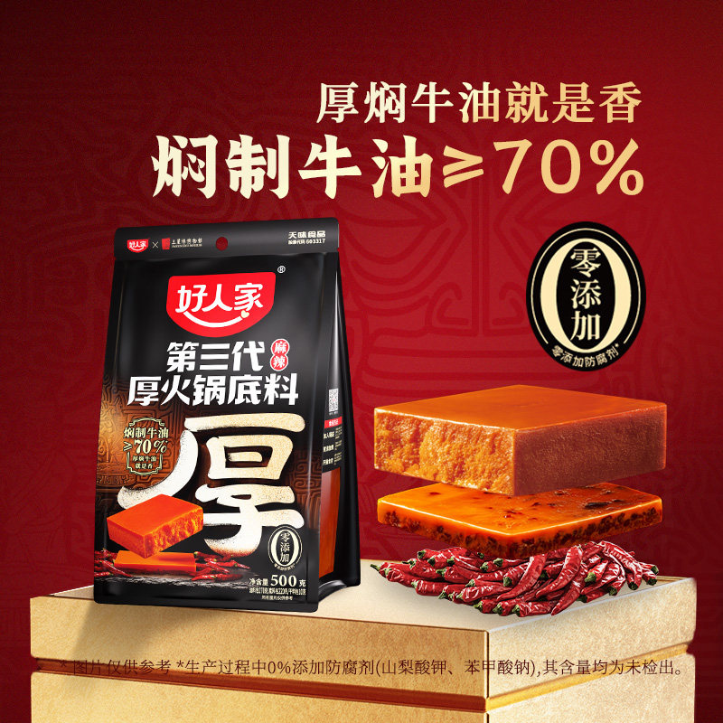好人家牛油火锅底料手工厚火锅调料500g四川重庆火锅麻辣烫冒菜