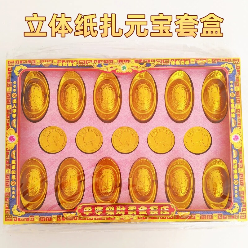 成品金条元宝黄金如意金具纸钱祭祖清明节寒衣节祭日上坟扫墓套盒