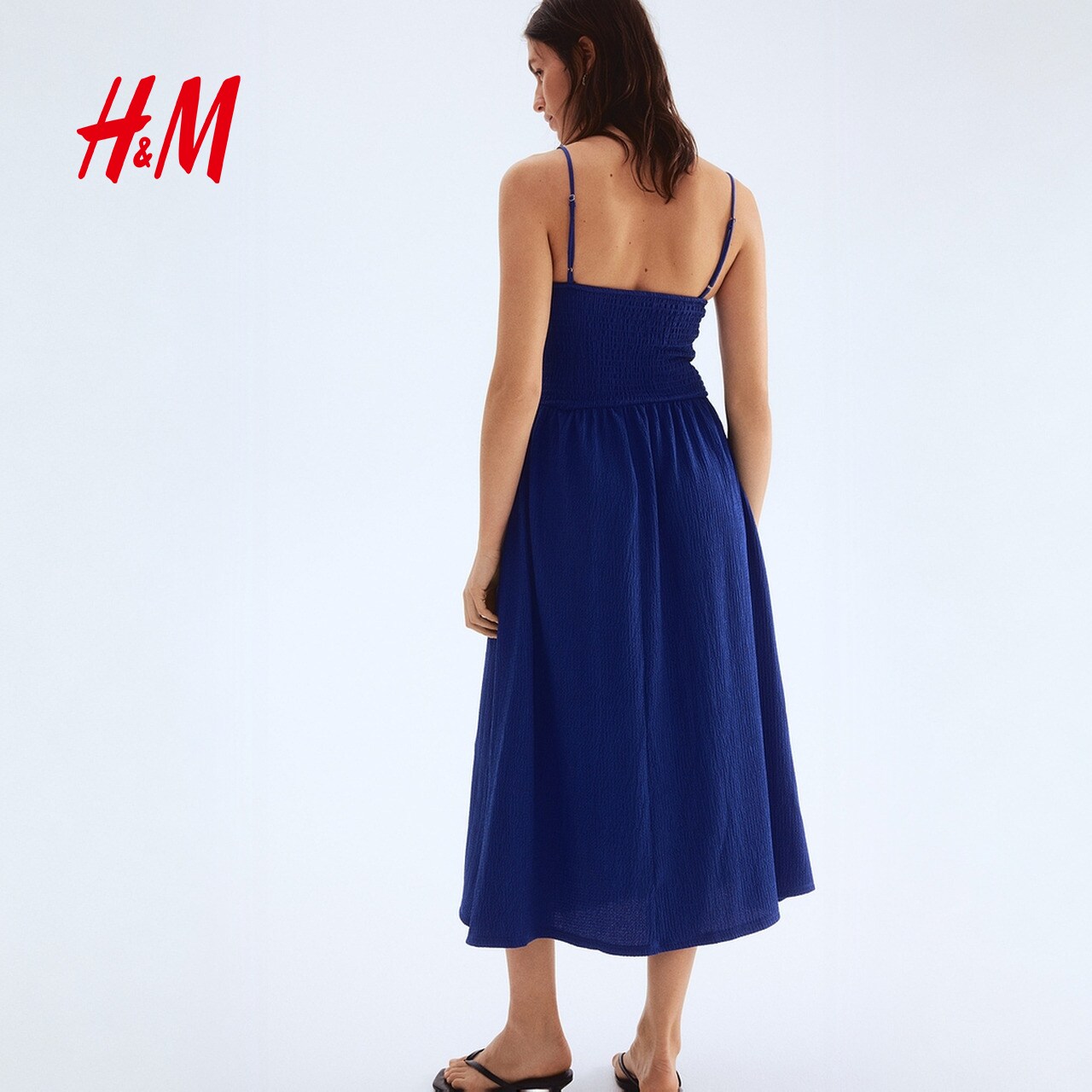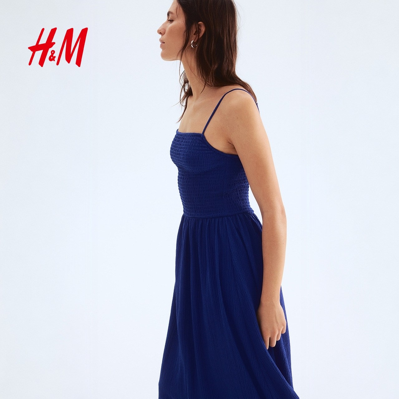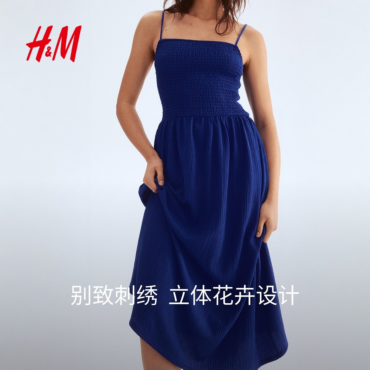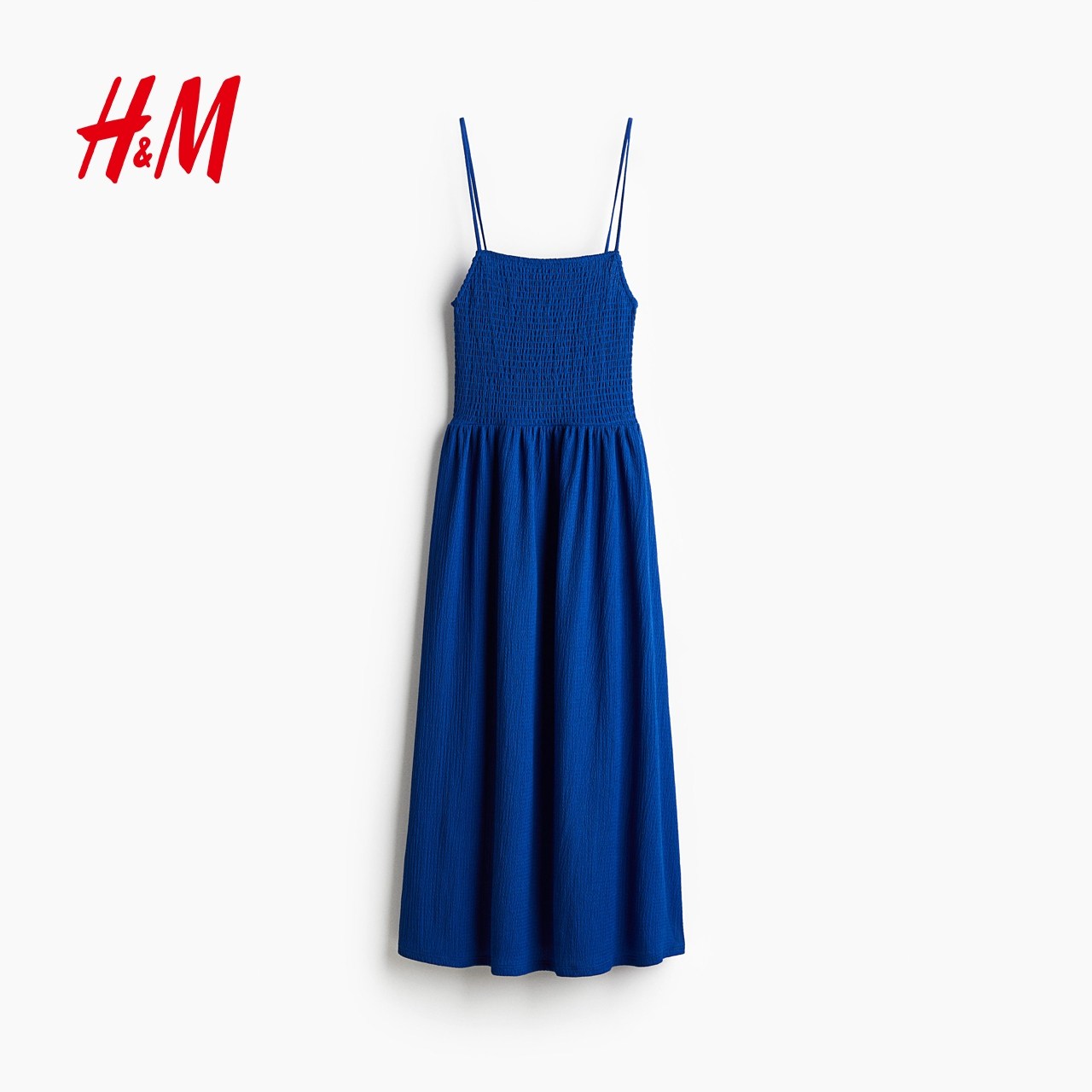 HM女装背心吊带连衣裙2025冬季新款缩褶收腰修身连身裙1283256