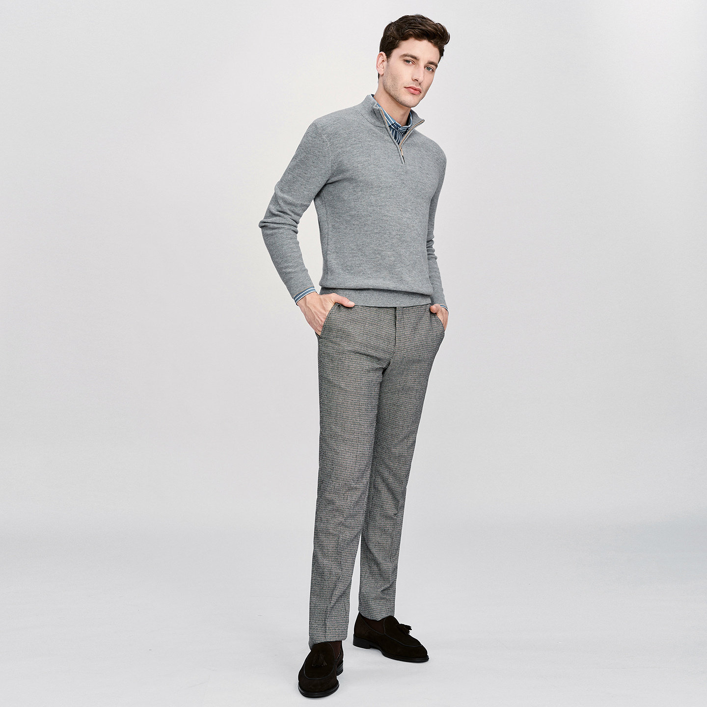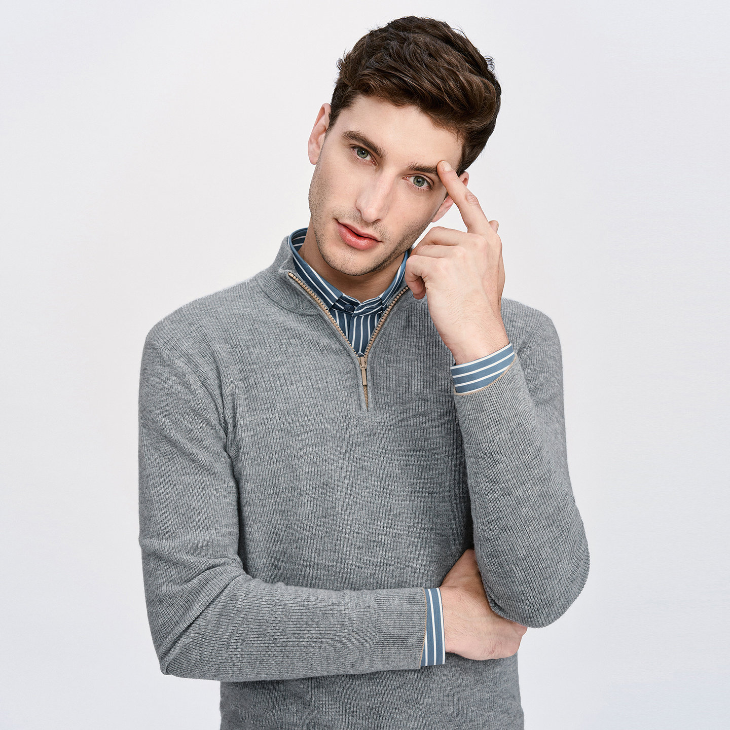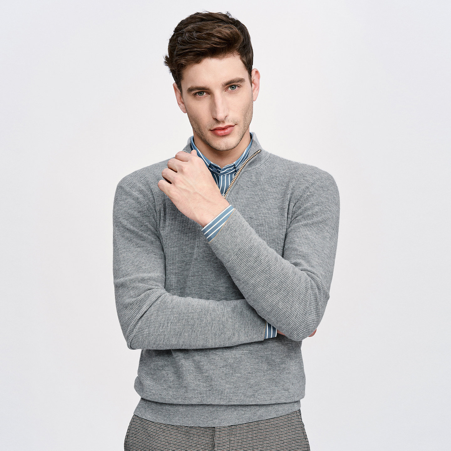 JODOLL乔顿男羊绒羊毛衫时尚休闲浅灰色毛衣舒适立领半拉链羊绒衫