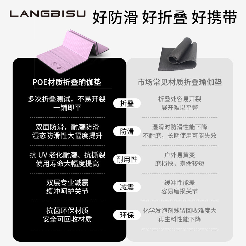 艾米达可折叠瑜伽垫便携加宽加厚加长防滑静音运动健身家用地垫子