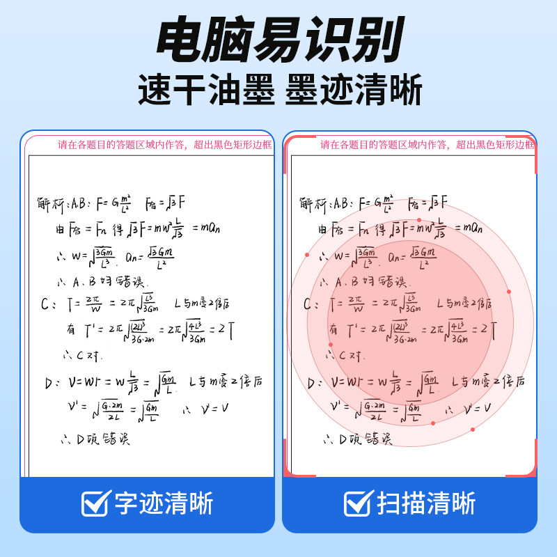 晨光按动中性笔黑色笔速干顺滑高颜值红蓝碳素笔考试办公用签字笔