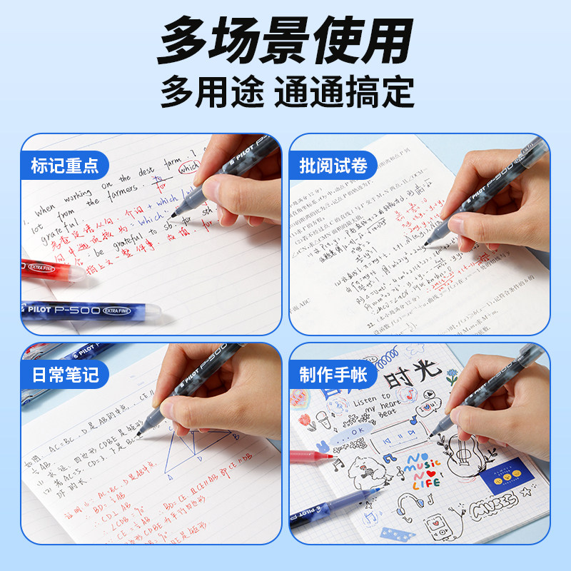 日本pilot百乐中性笔P500/P700金标系列学生高考考试用套装大容量0.5刷题考试笔走珠笔黑色官网正品学生文具