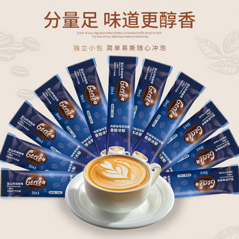 蓝山咖啡特浓三合一咖啡粉学生提神拿铁袋装奶香冻干牛乳好喝速溶