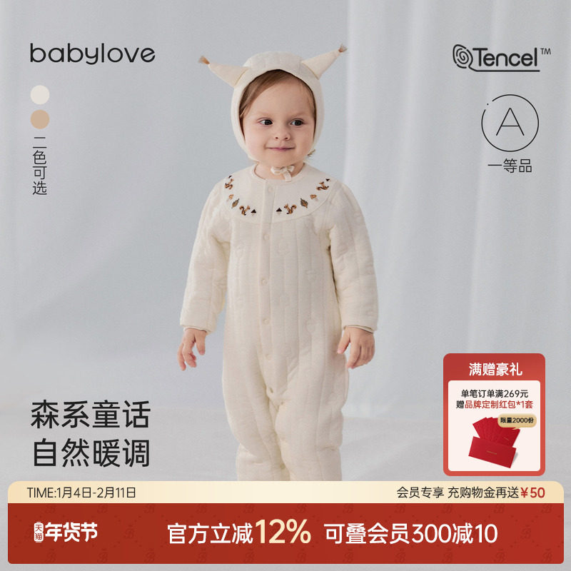 babylove婴儿连体衣秋冬薄夹棉哈衣爬服宝宝棉莫保暖居家外出衣服
