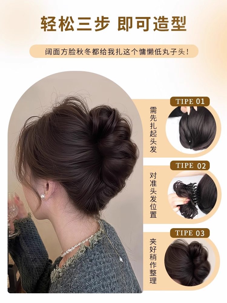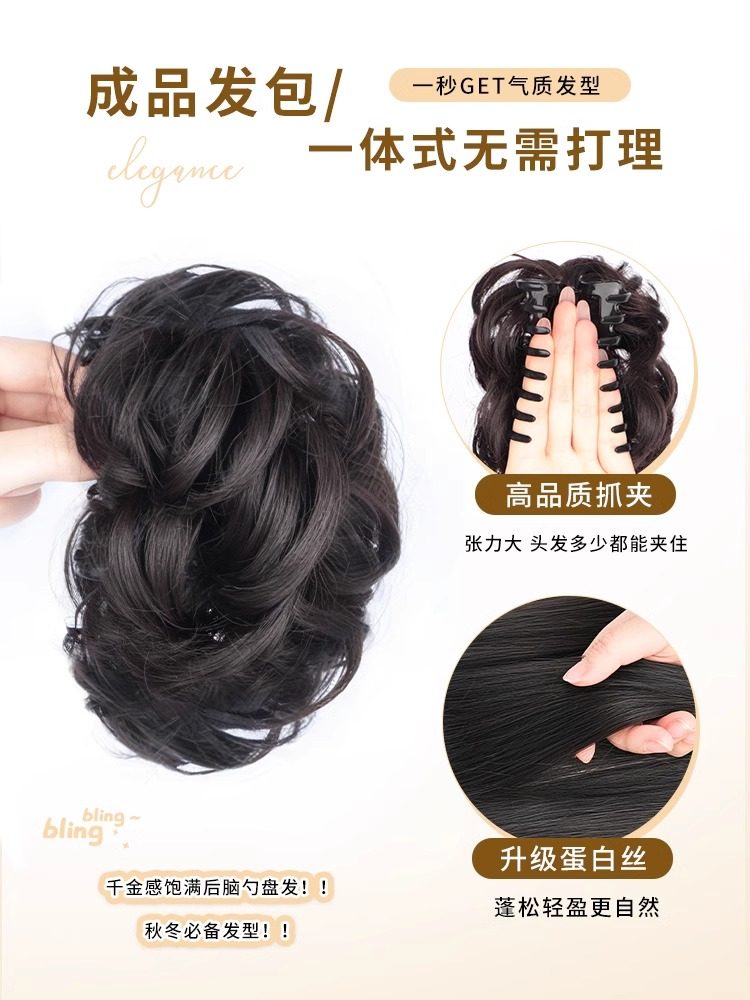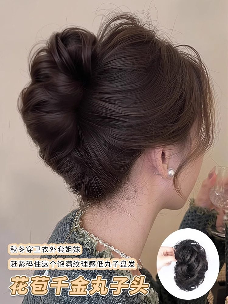 低扎丸子头假发鸡毛头抓夹盘发发包慵懒感造型头饰自然蓬松后脑勺