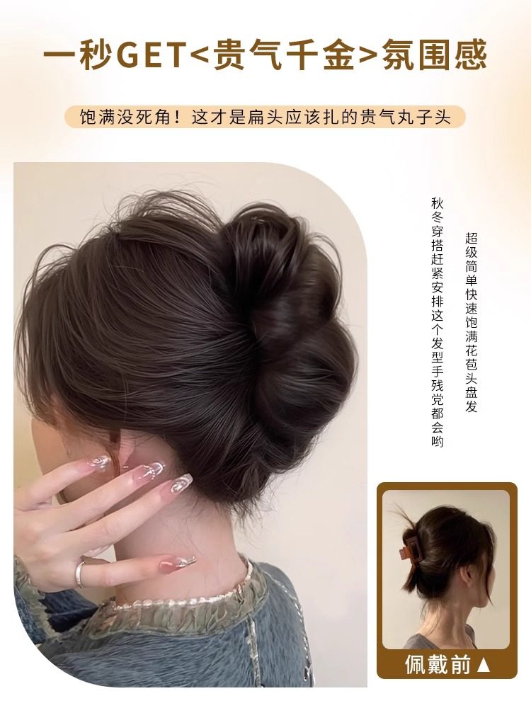 丸子头假发千金花苞头抓夹盘发神器仿真发网颅顶新中式假发圈蝴蝶
