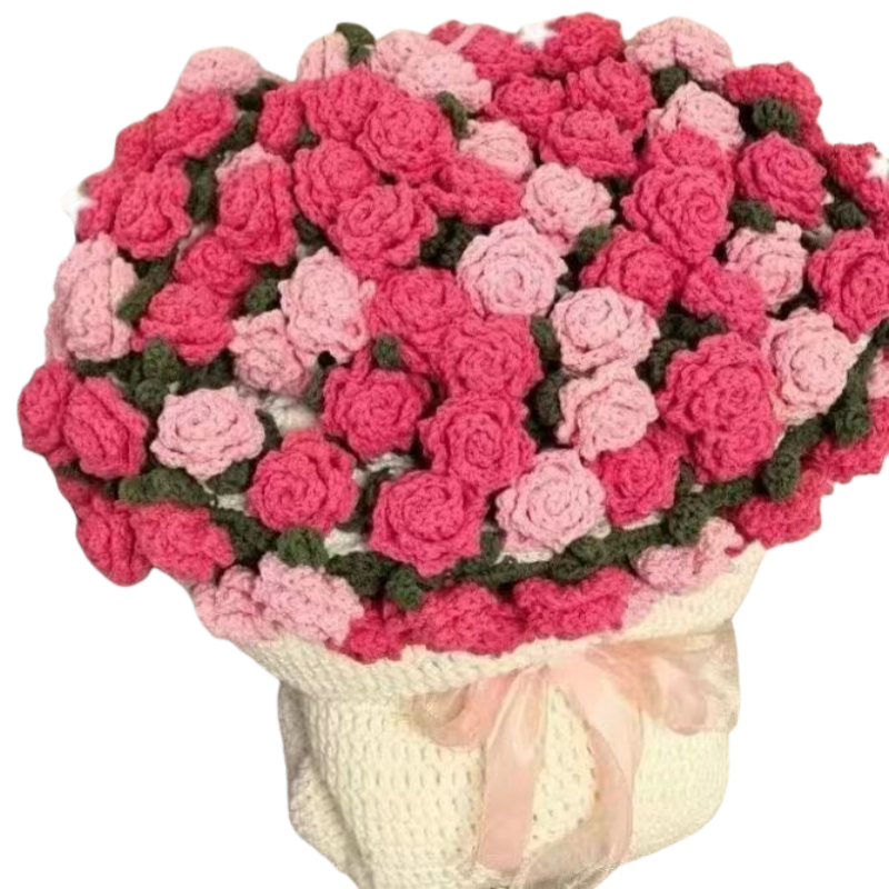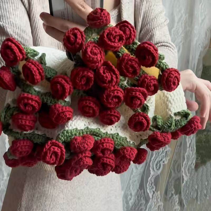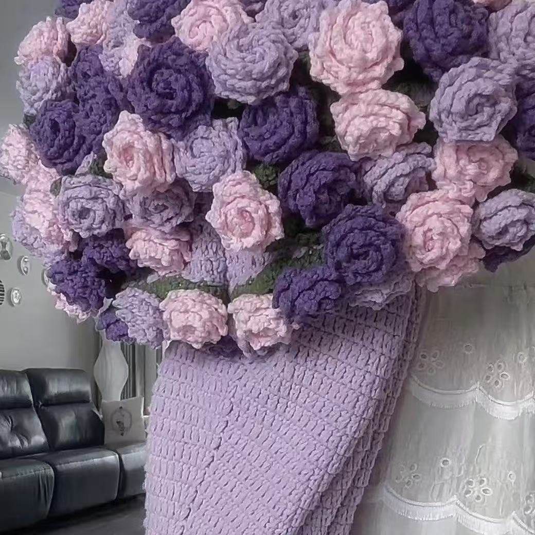 毛线手工编织玫瑰花毯子花束钩针diy材料包礼物无聊解闷作