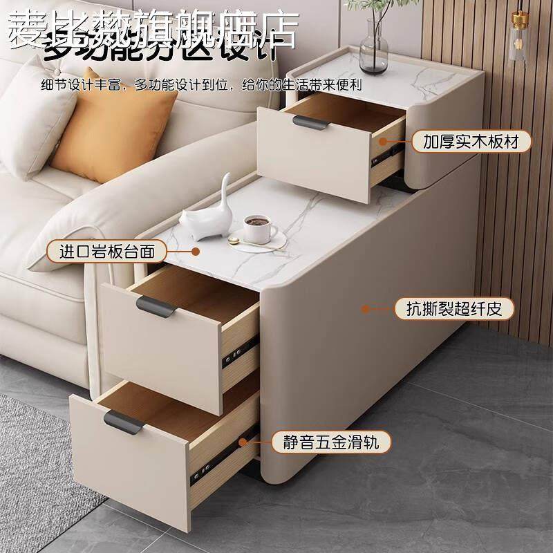 麦比梵2025新款沙发边柜岩板轻奢高级感简约现代小型实木客厅边几侧边柜床笠拉车