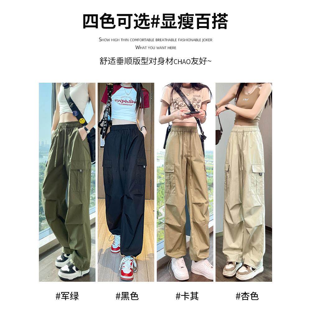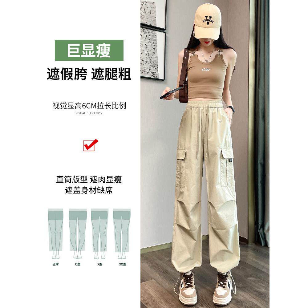 美式速干直筒工装裤女春秋夏新款束脚冲锋登山裤阔腿运动裤大码