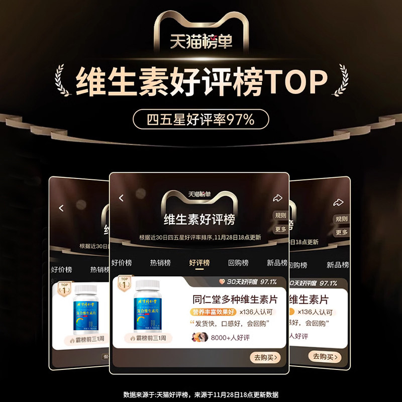北京同仁堂维生素b族片复合维生素b1b2b6 b12男女士vb补钙多维c片