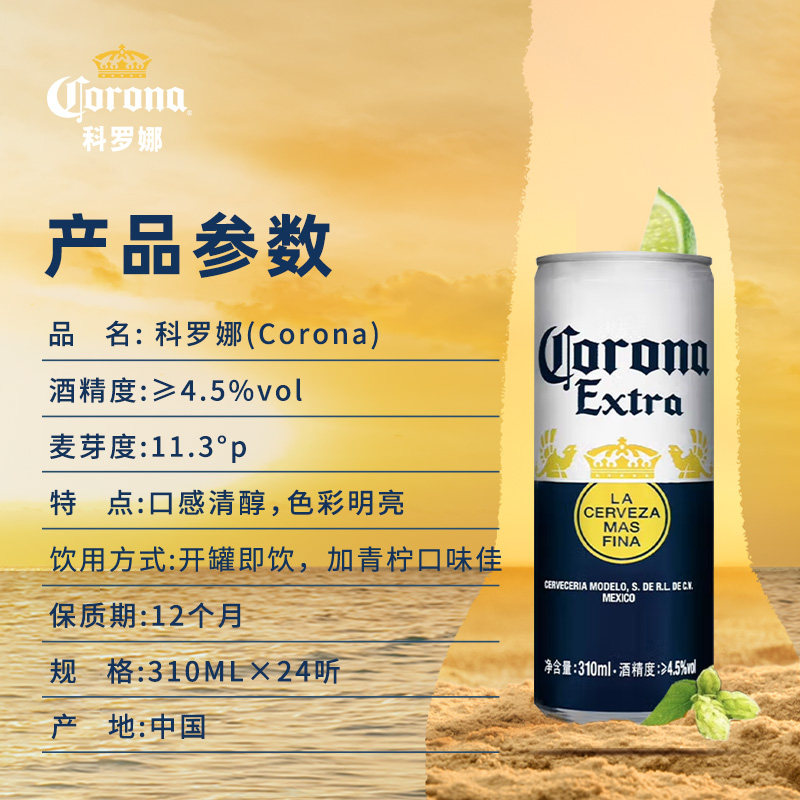 Corona/科罗娜特级啤酒310ml*12听11.3°P墨西哥风味拉格整箱批发