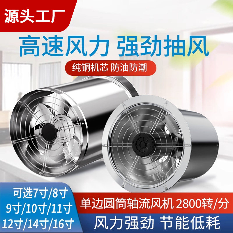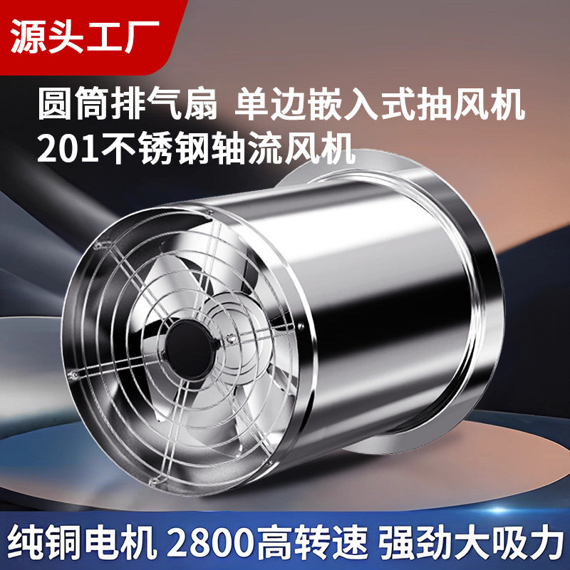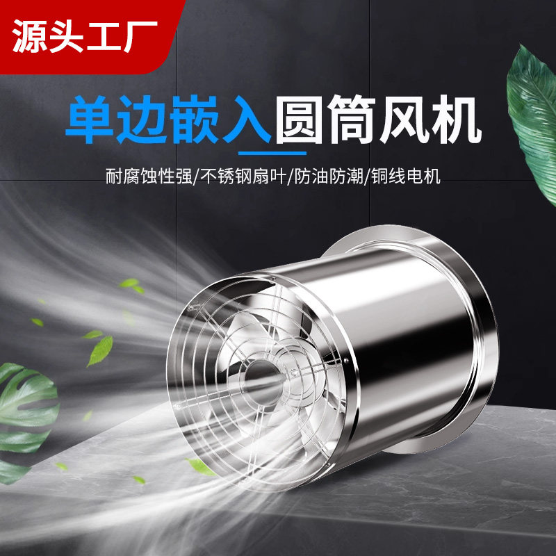 圆筒不锈钢嵌入式高速轴流抽风机厨房强力排气扇卫生间排风扇管道