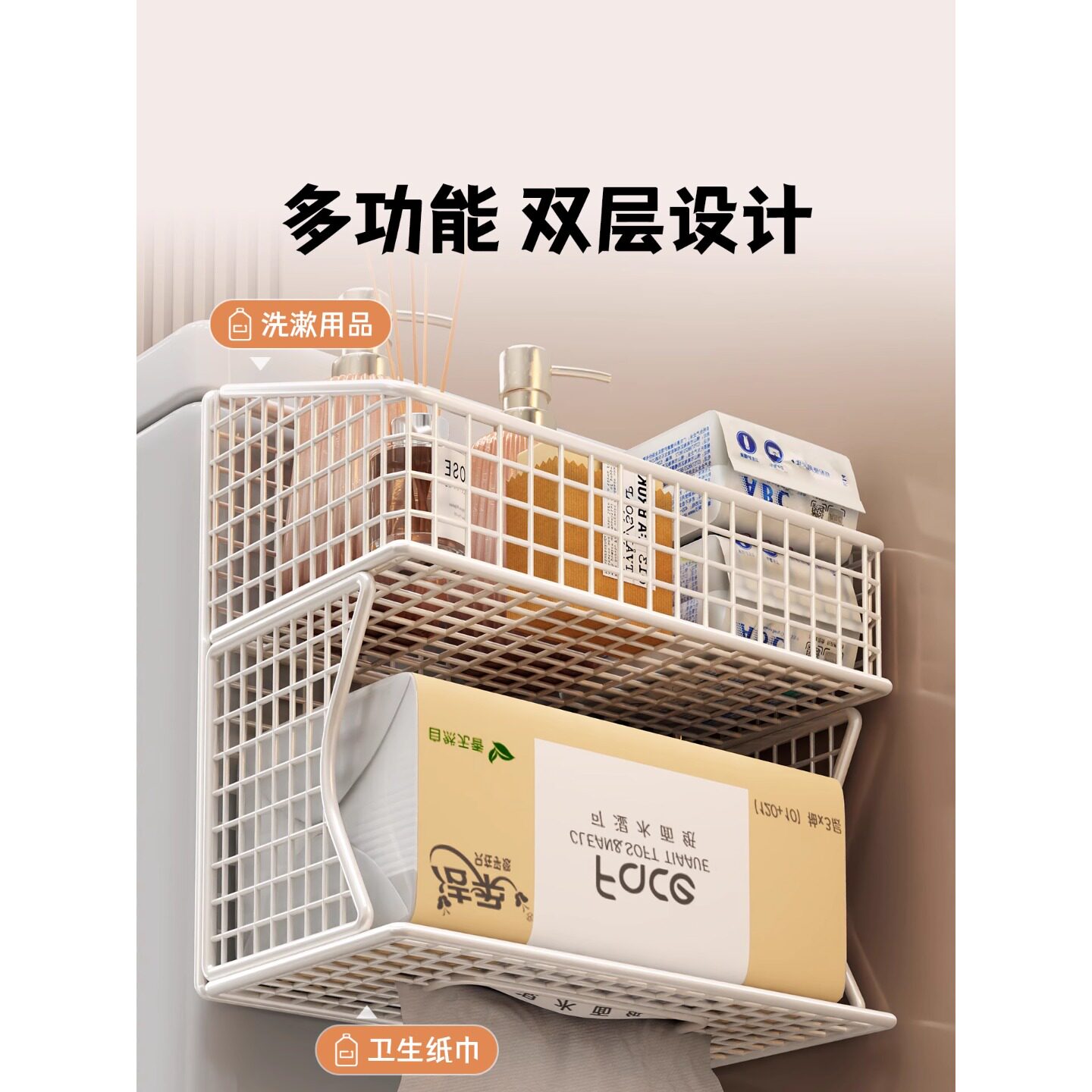 卫生间厕纸盒家用厕所马桶旁免打孔卷纸抽纸架浴室纸架卫生纸纸巾