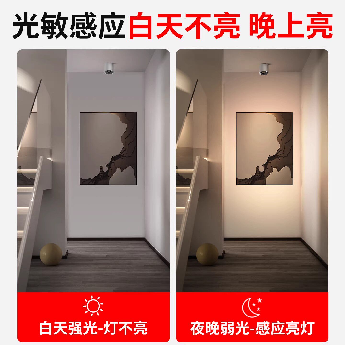 人体双重感应筒灯薄款明装筒灯感应灯人来灯亮入户玄关过道射灯