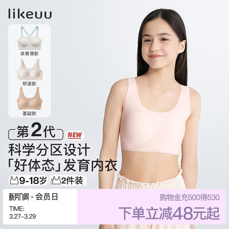 ubras旗下likeuu少女发育内衣基础/运动无尺码女童初中背心款2件