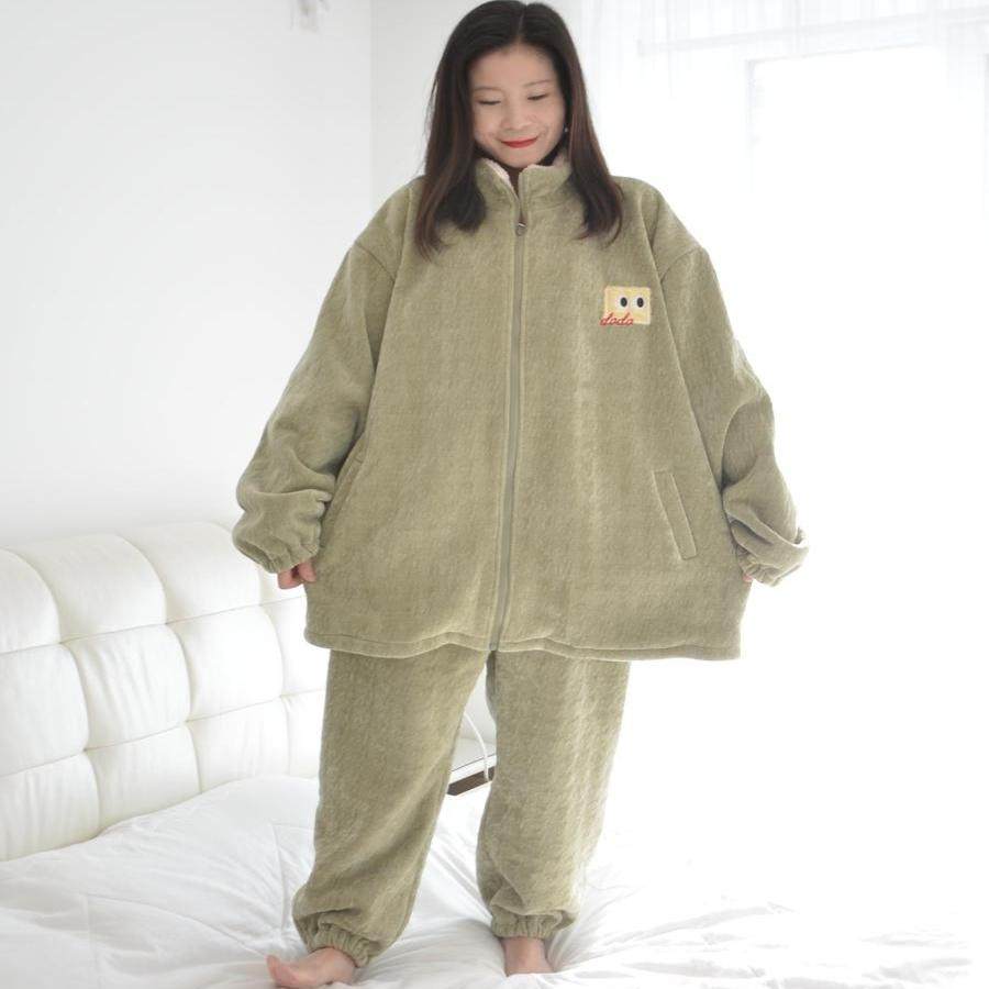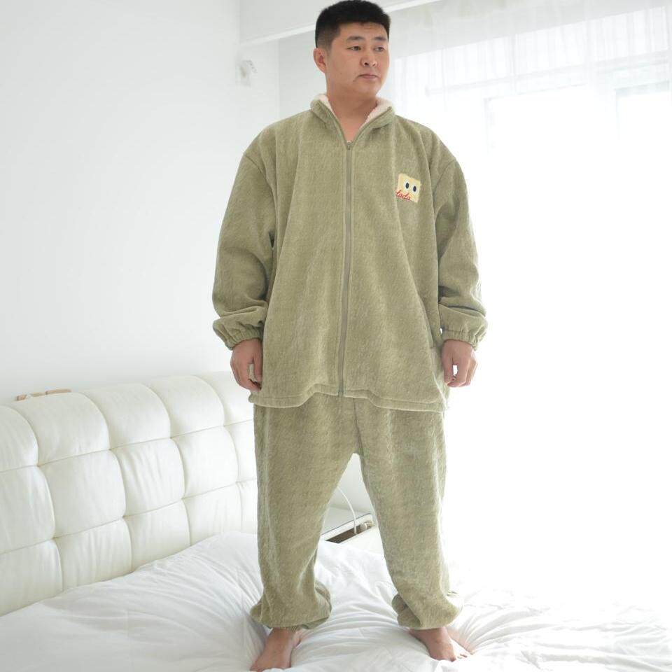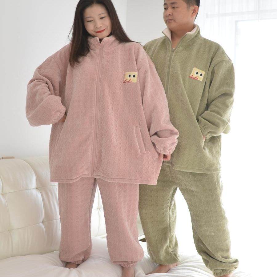 260斤加肥大码加厚复合绒睡衣男女胖MM冬季拉锁款休闲家居服套装