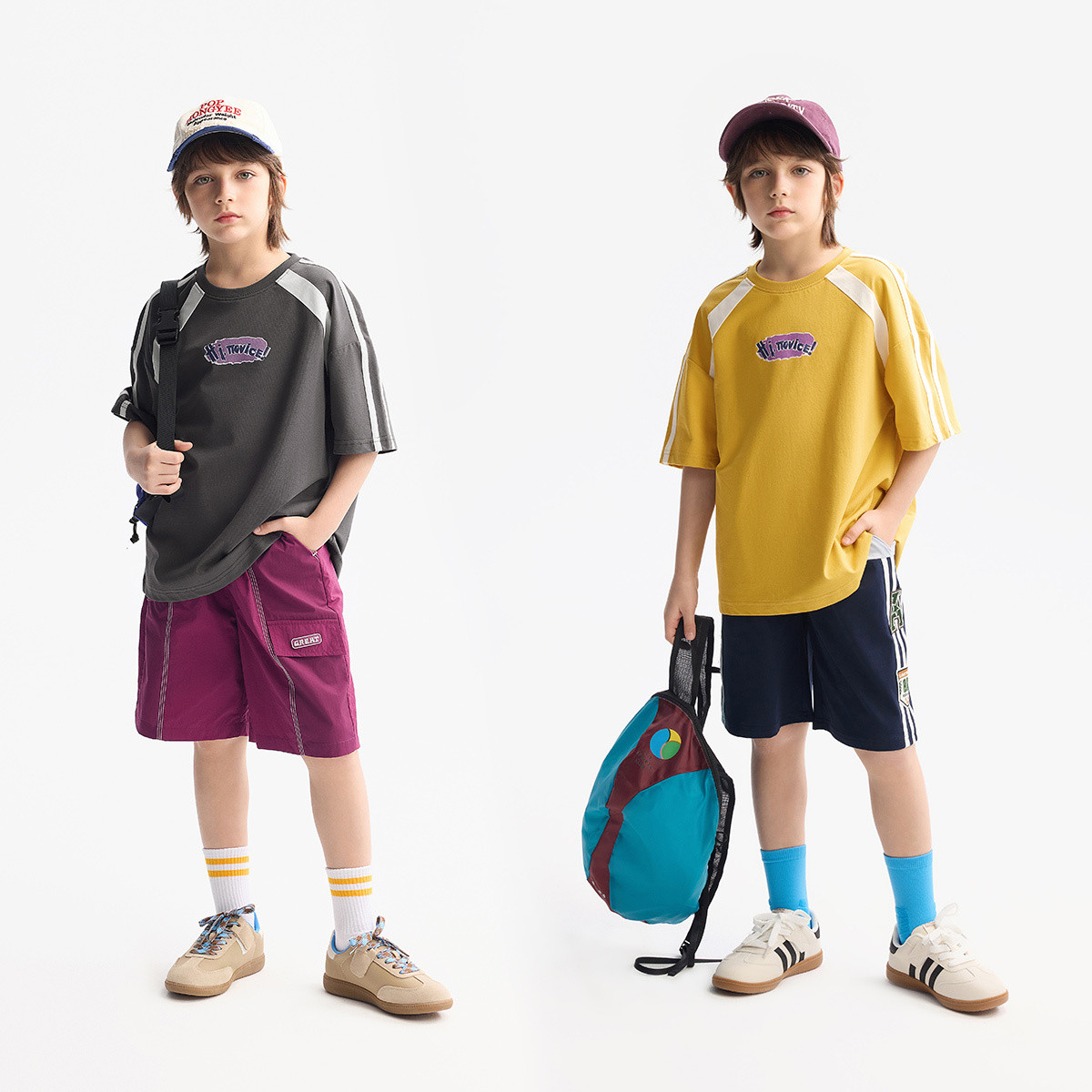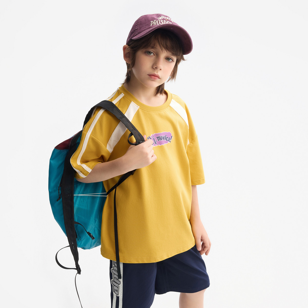 【吸湿速干】MQD童装男童短袖T恤2025夏装新款儿童复古学院T恤