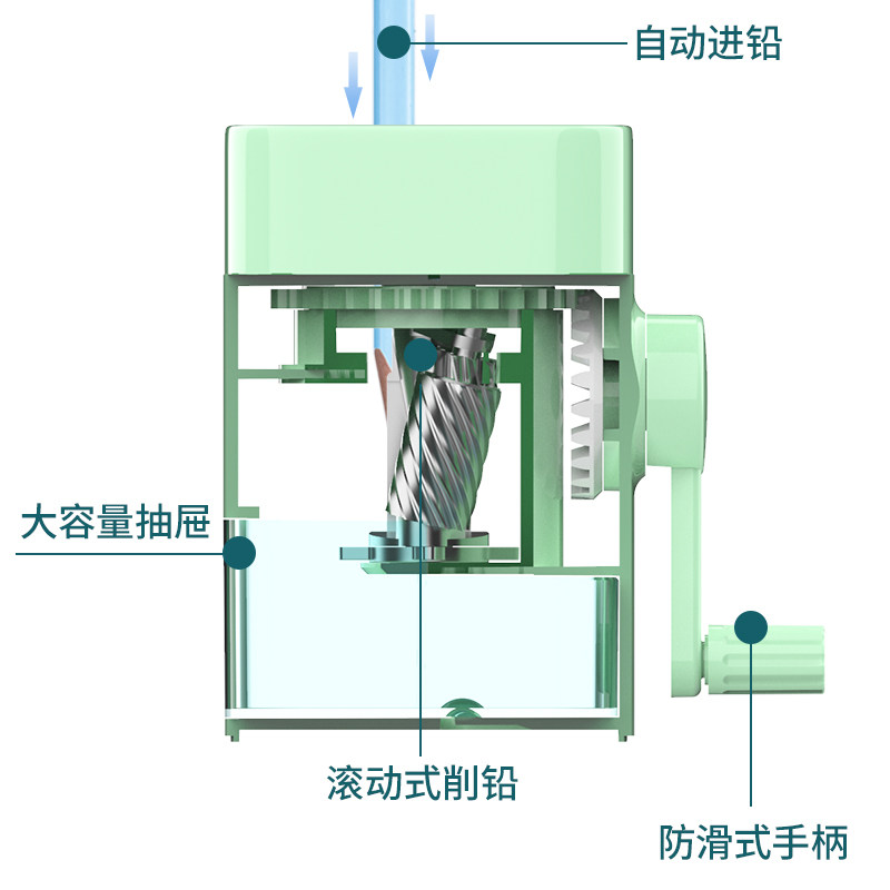 得力上部进笔削笔机手动削铅笔器洞洞笔削笔器小学生用自动削笔刀卷笔刀儿童手摇铅笔刀车笔刀削笔71154