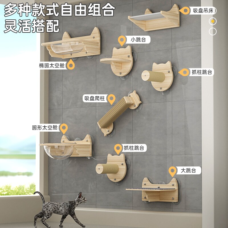 壁挂式猫爬架实木窗户玻璃吸盘免打孔墙壁太空舱猫窝跳台吊床抓柱
