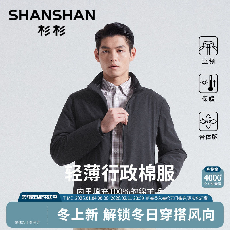 杉杉男士新款外套冬装轻薄行政棉服夹克爸爸装冬季绵羊毛保暖棉袄
