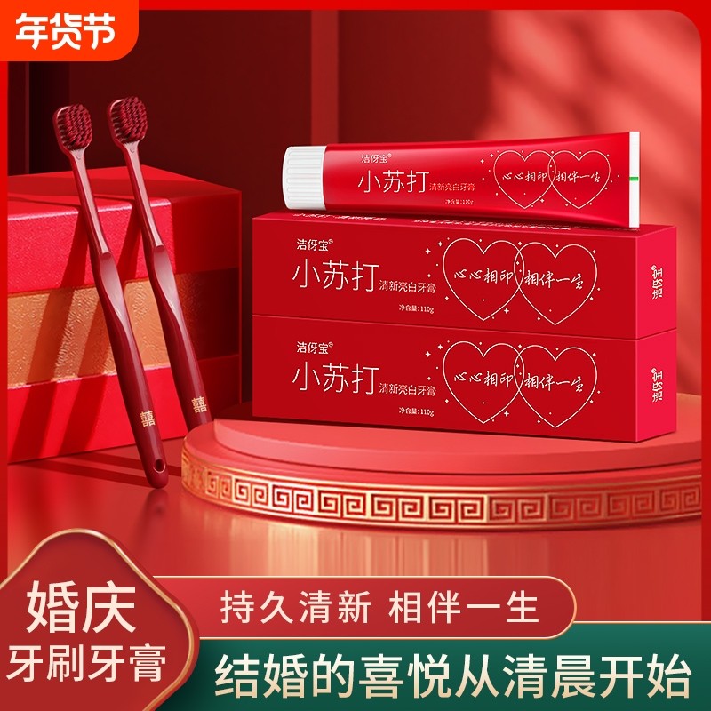 牙膏结婚红色一对牙刷套装陪嫁用的红牙膏包装牙杯三件套漱口杯