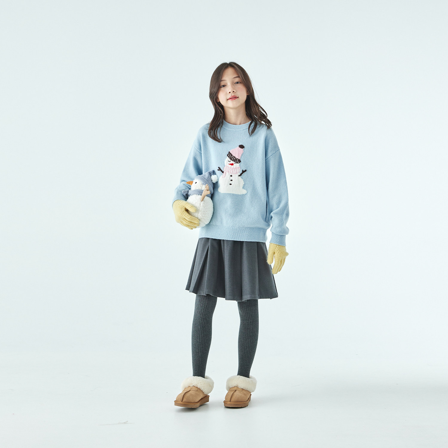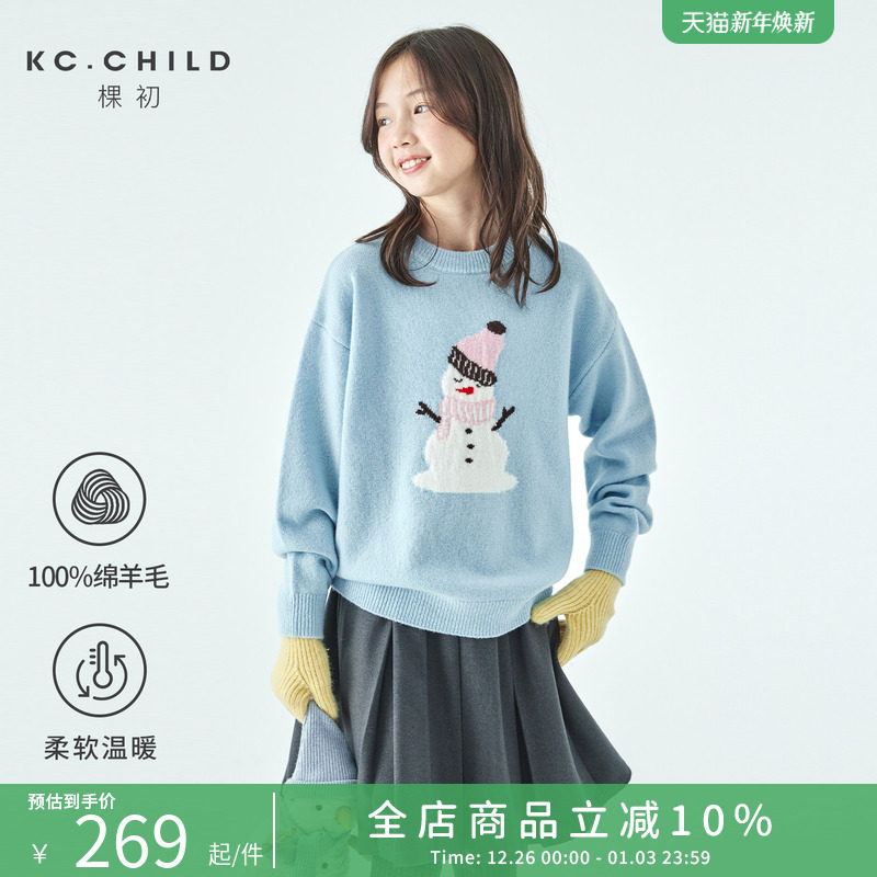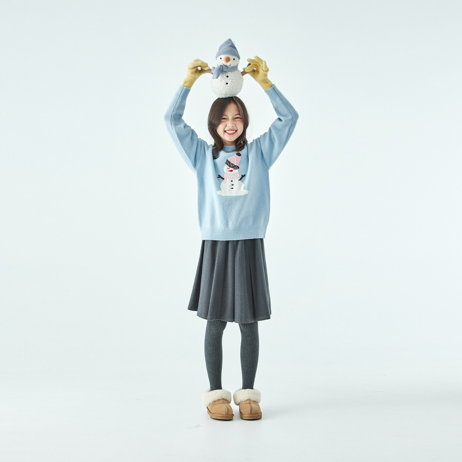 棵初2025年冬季新款亲子中大女童雪人图案毛衣纯绵羊毛保暖上衣
