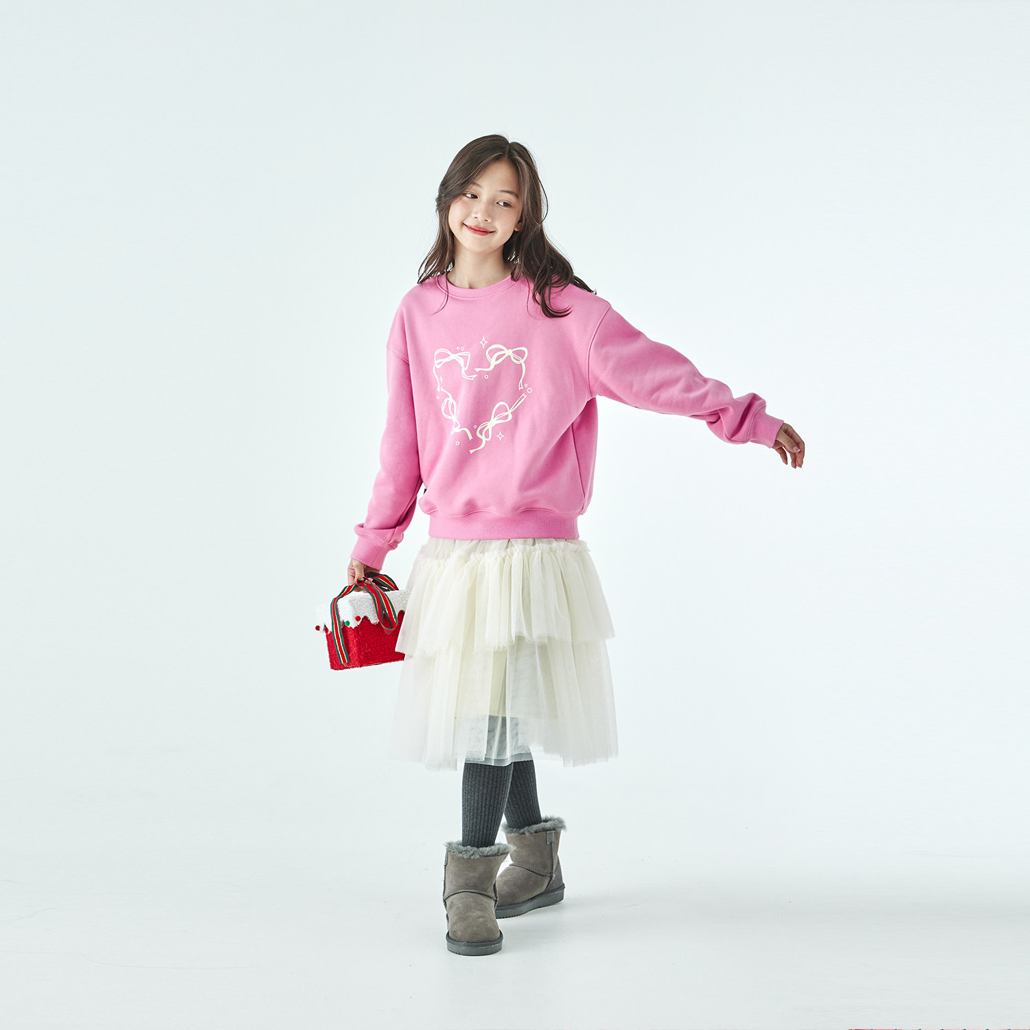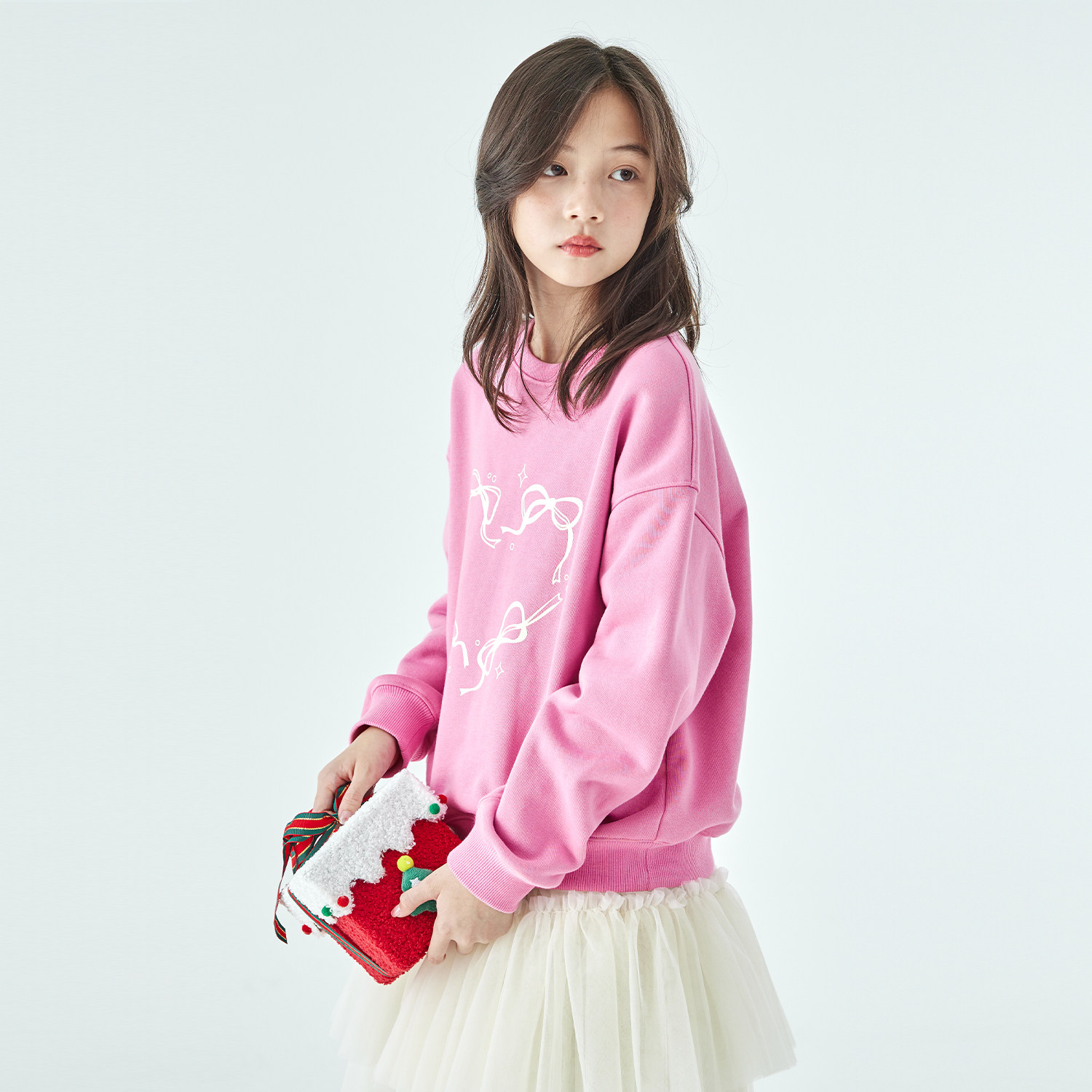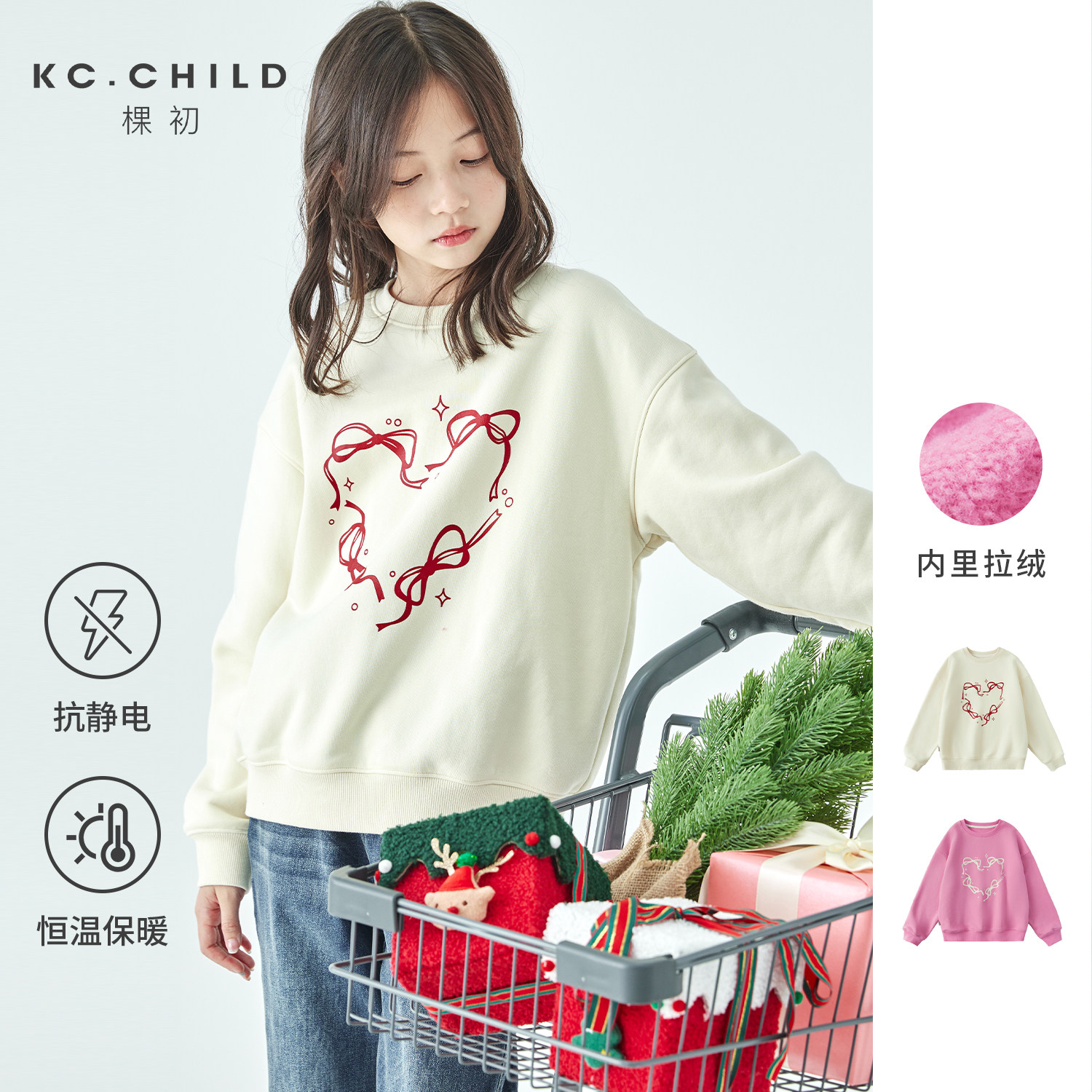 棵初25年冬季新款亲子中大女童爱心蝴蝶印花卫衣抗静电保暖上衣