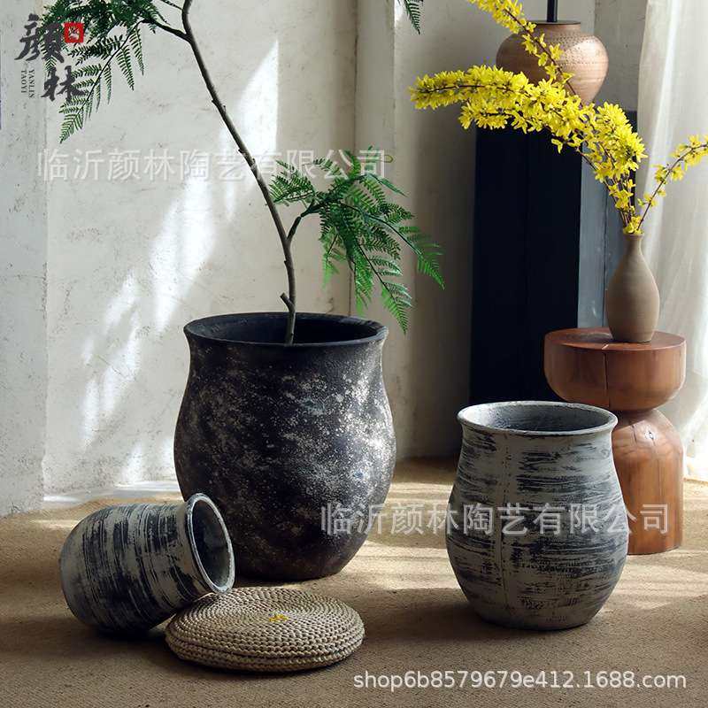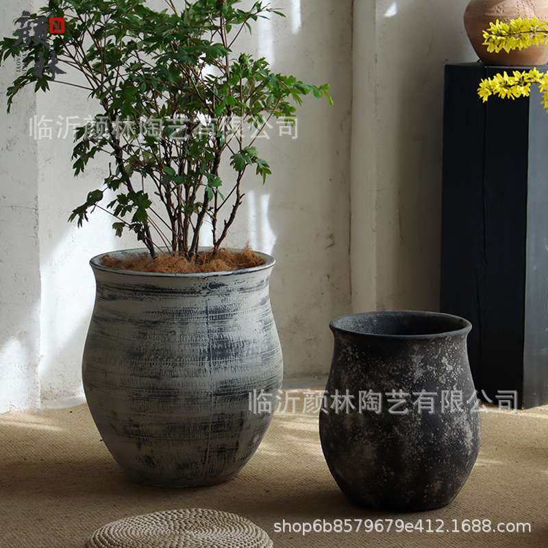 复古创意落地水泥花盆龙血树千年木绿植盆酒店商场服装店装饰花器