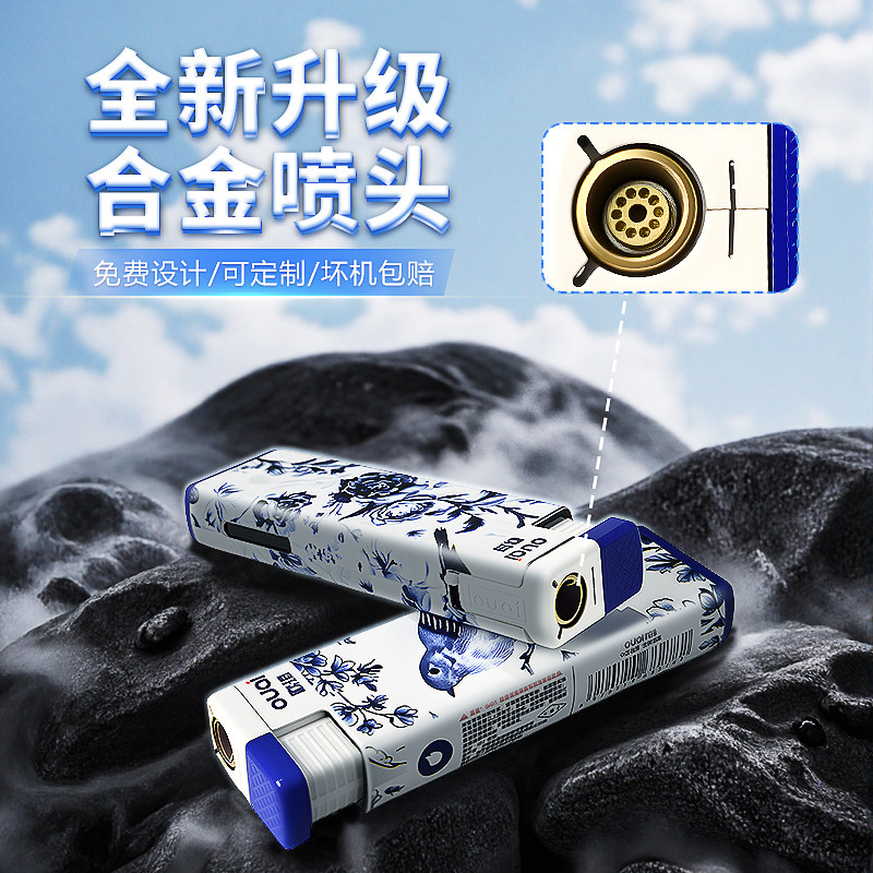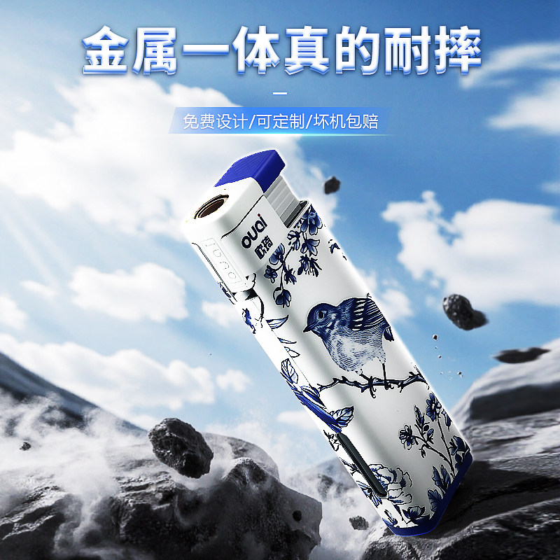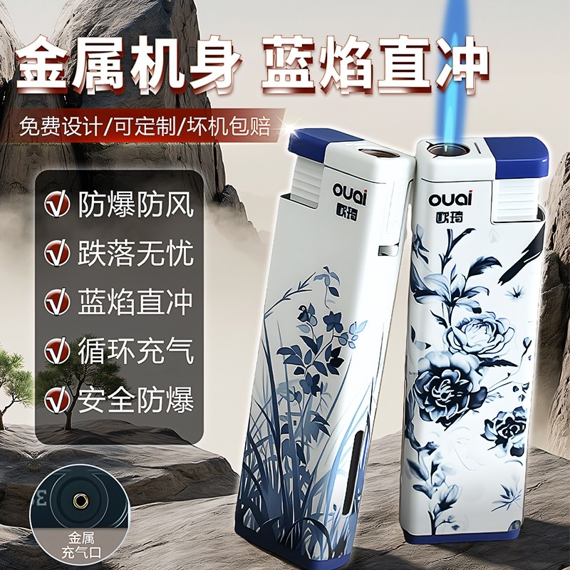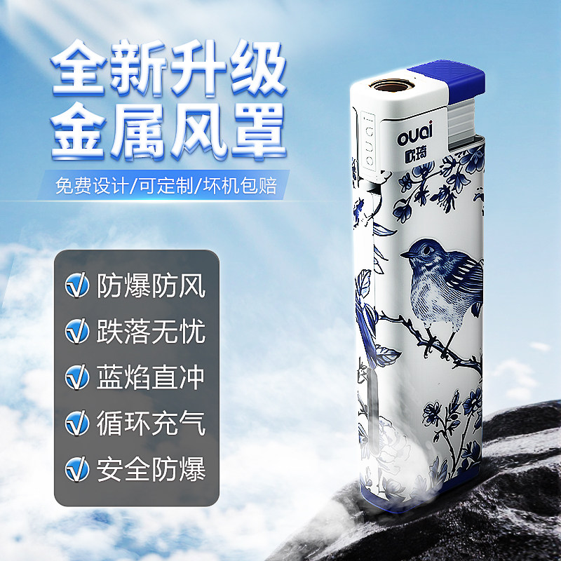50支欧琦新款耐用金属防风直喷打火机双层加厚防爆可循环充气耐用