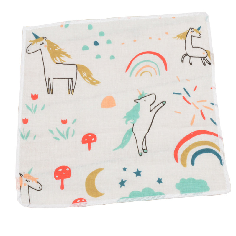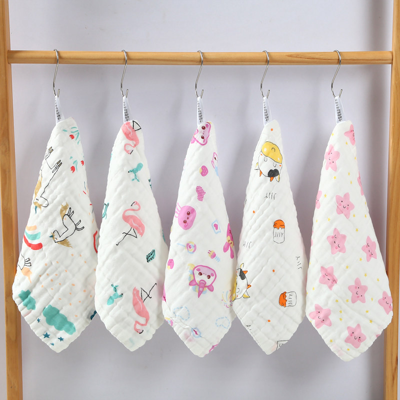 宝宝口水巾纯棉纱布婴儿方巾柔软卡通儿童洗脸巾新生儿小方巾童巾