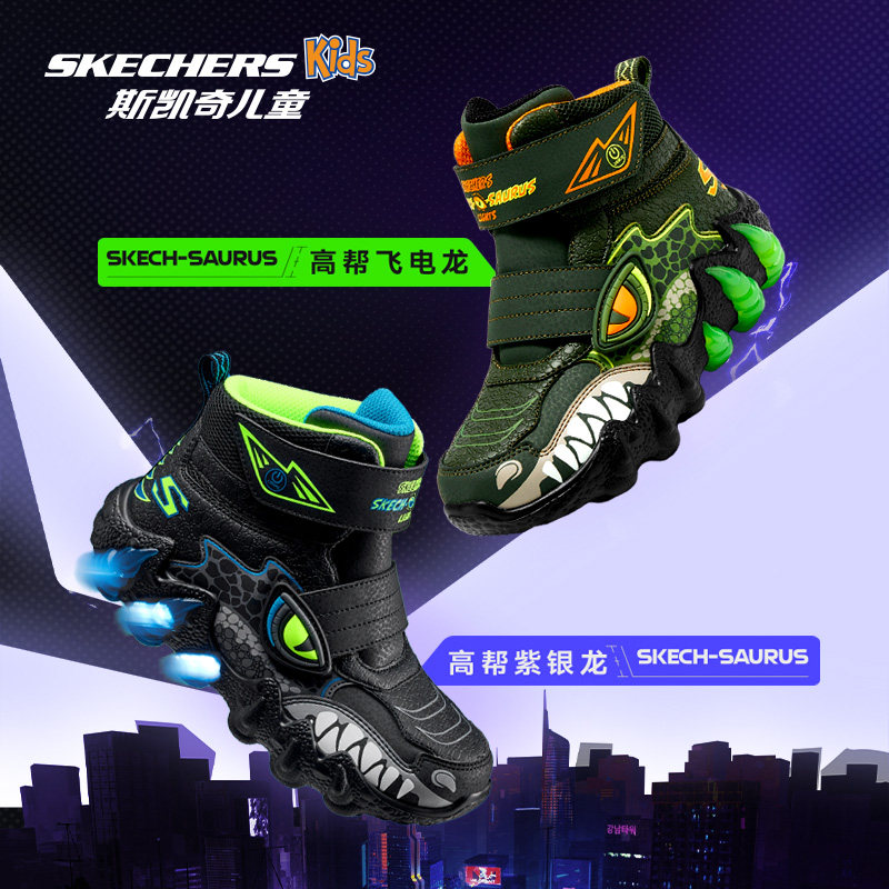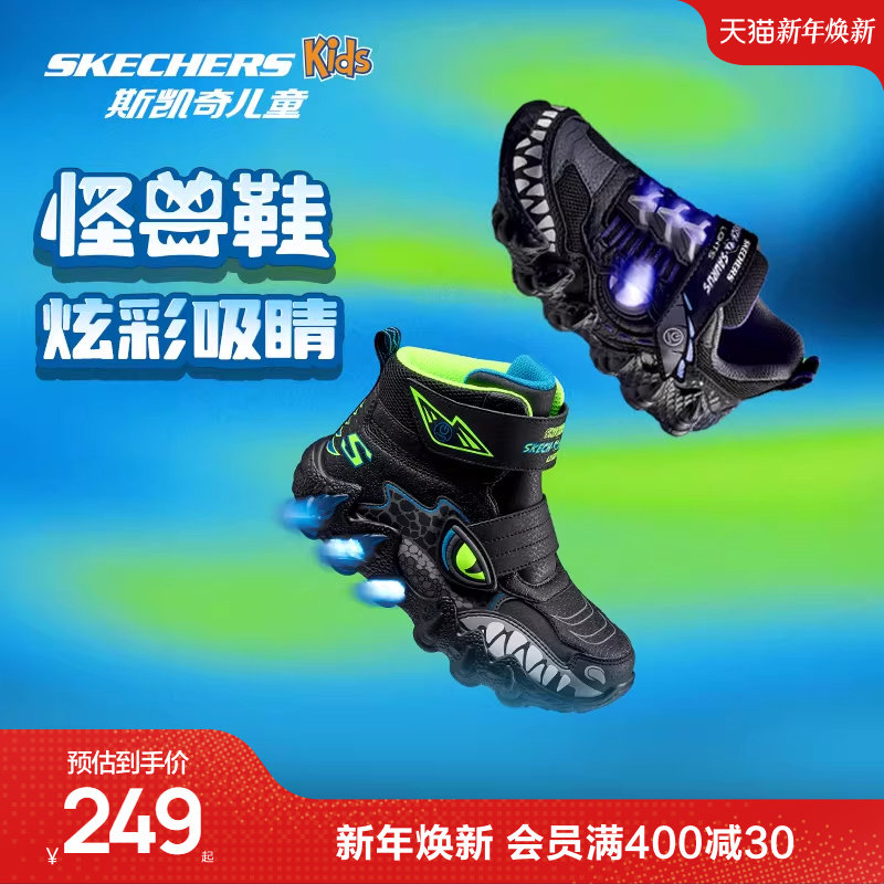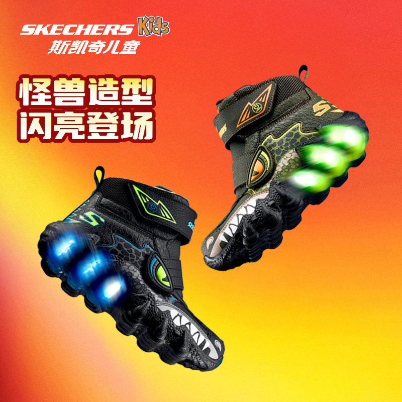 Skechers斯凯奇儿童怪兽鞋秋冬棉鞋运动鞋闪灯男童鞋炫酷亮灯靴子
