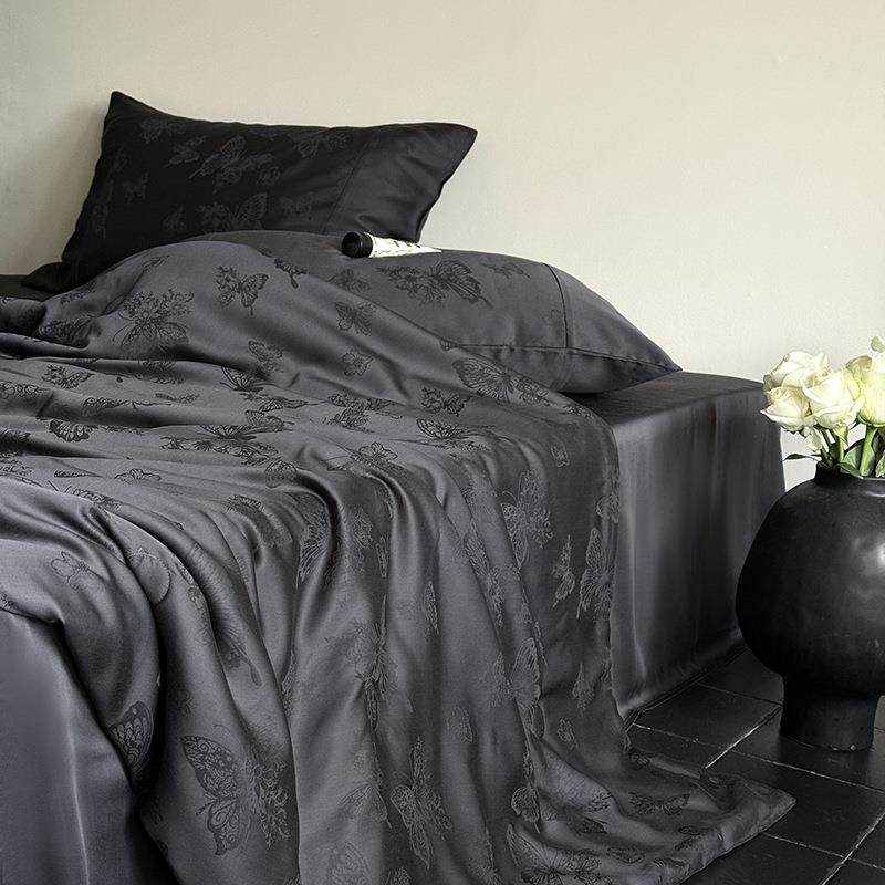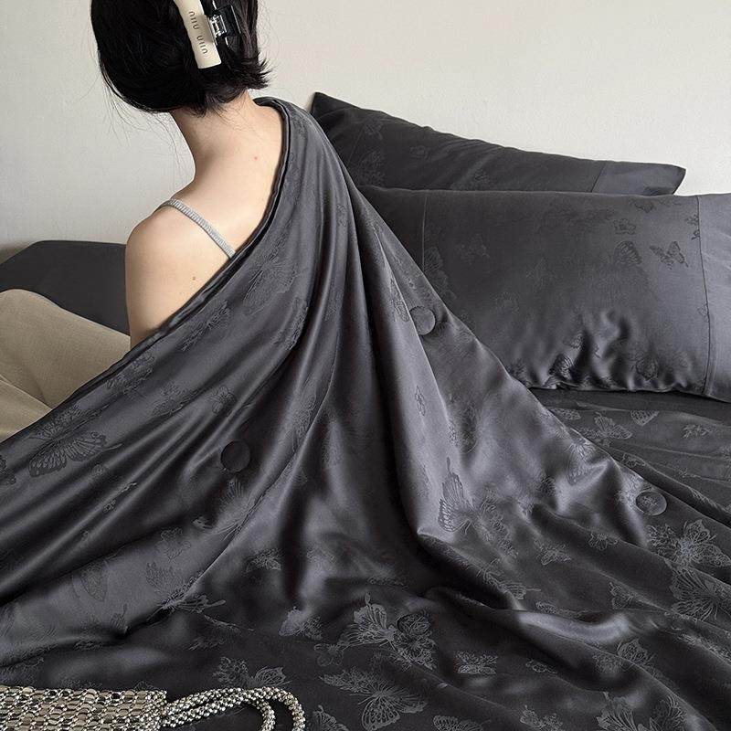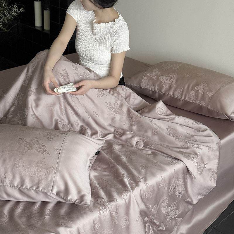 60支莱赛尔天丝蝴蝶提花双人可机洗夏凉被丝滑凉感裸睡薄被四件套