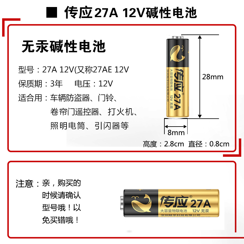 27a12v电池23A12V车库电动卷帘门铃风扇吊灯遥控器l828小号短电池